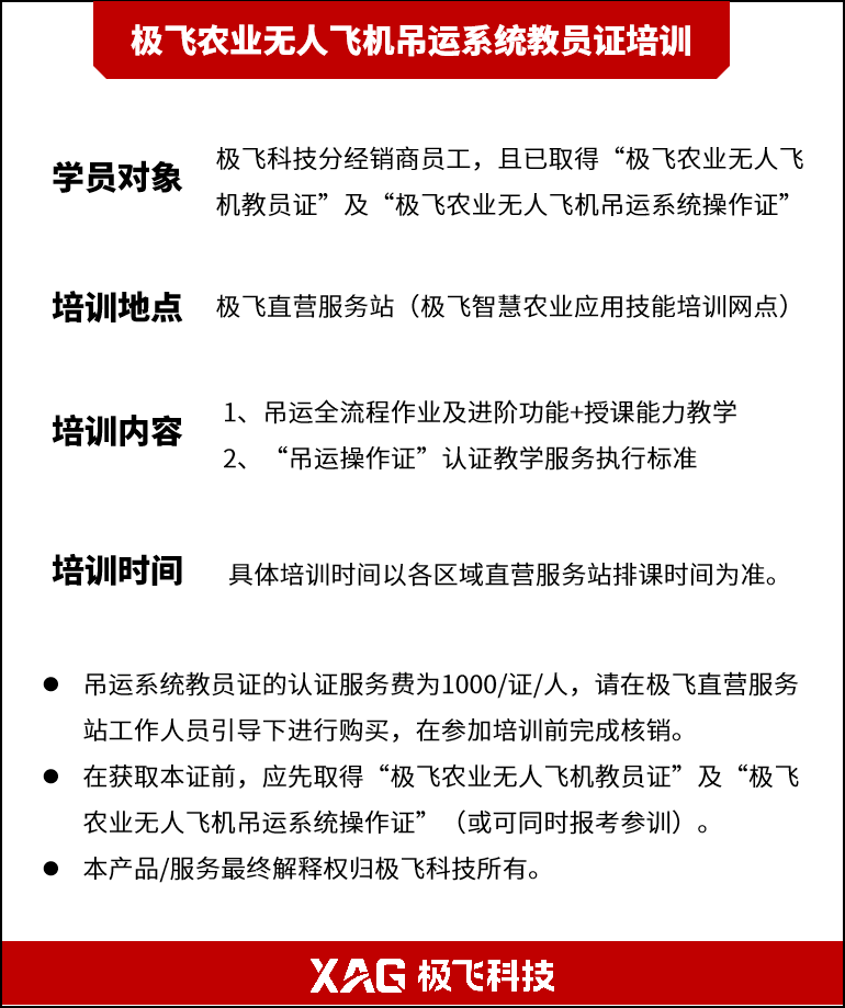 极飞农业无人飞机吊运系统教员认证培训服务