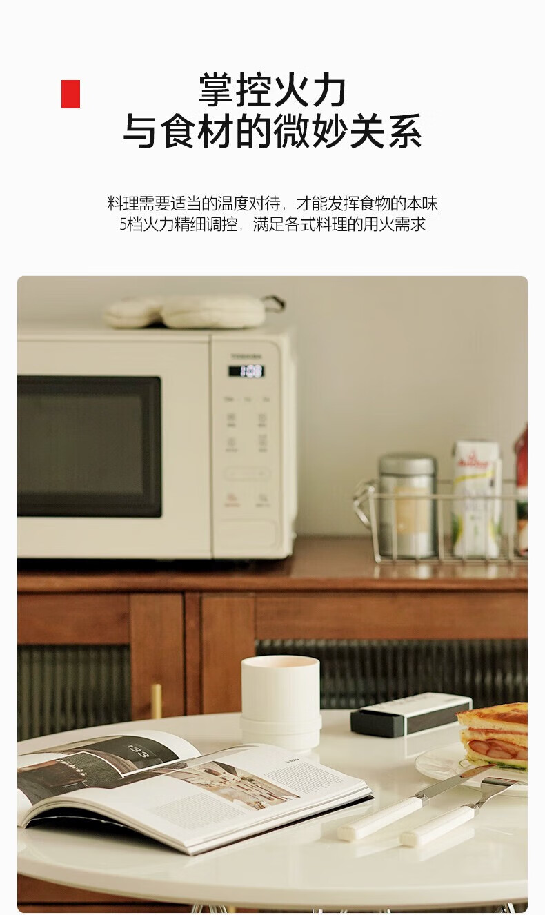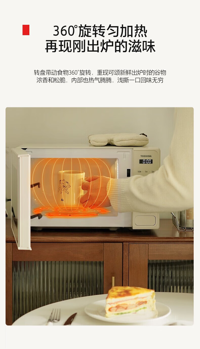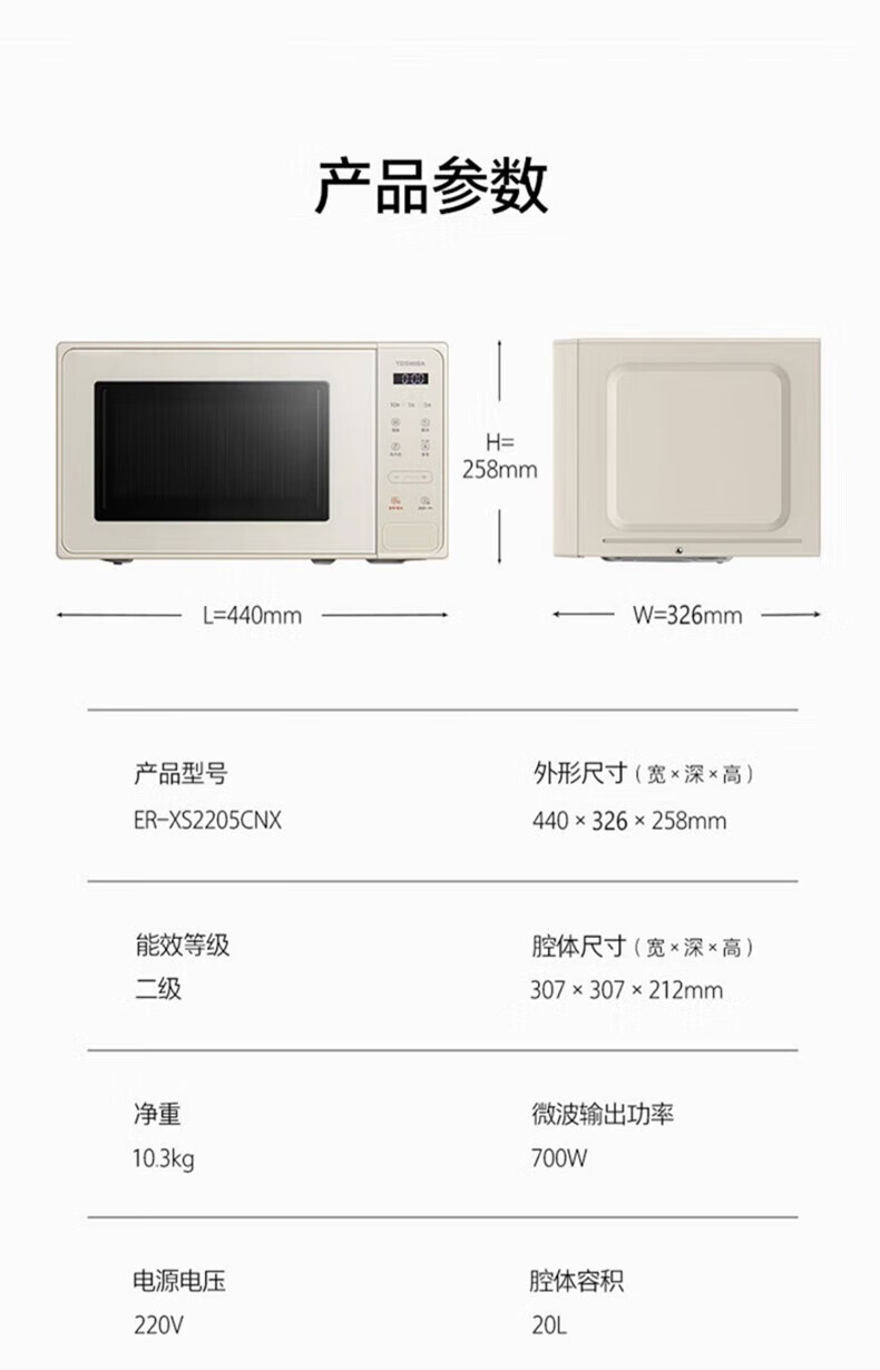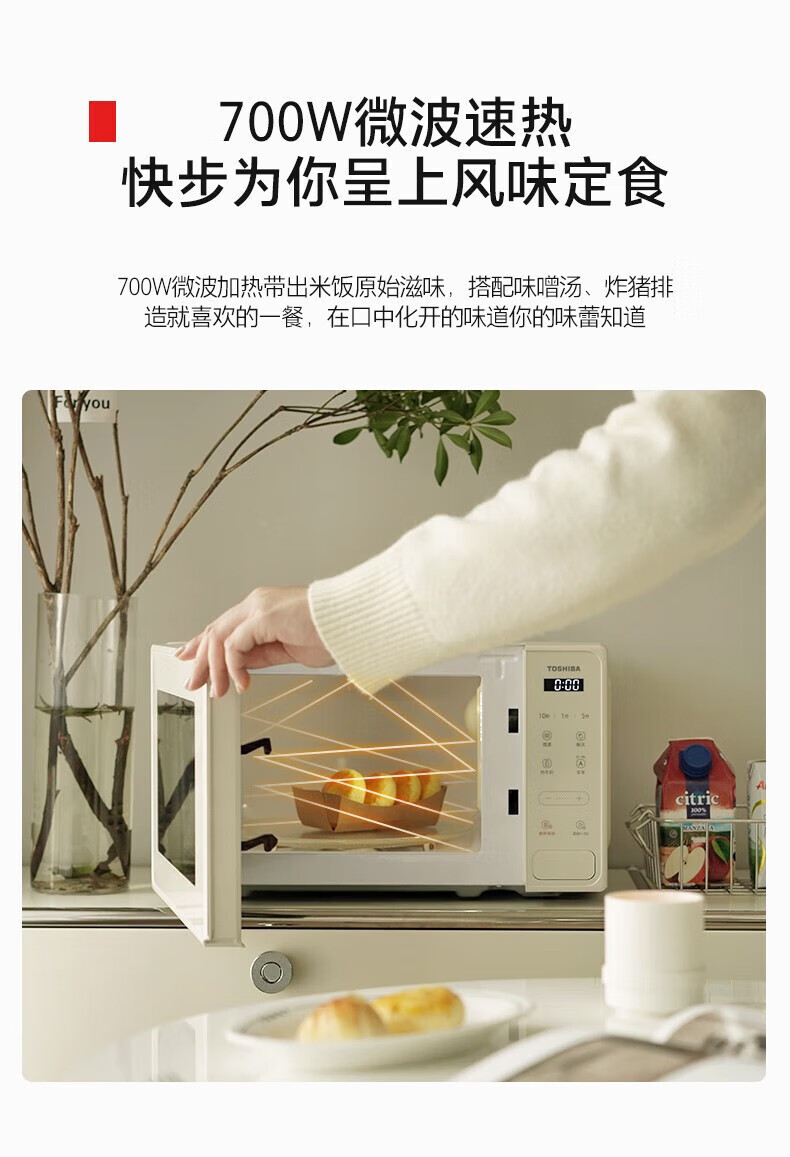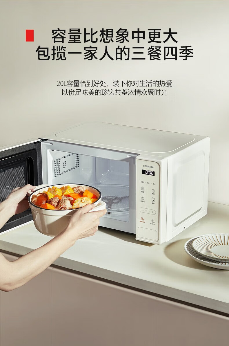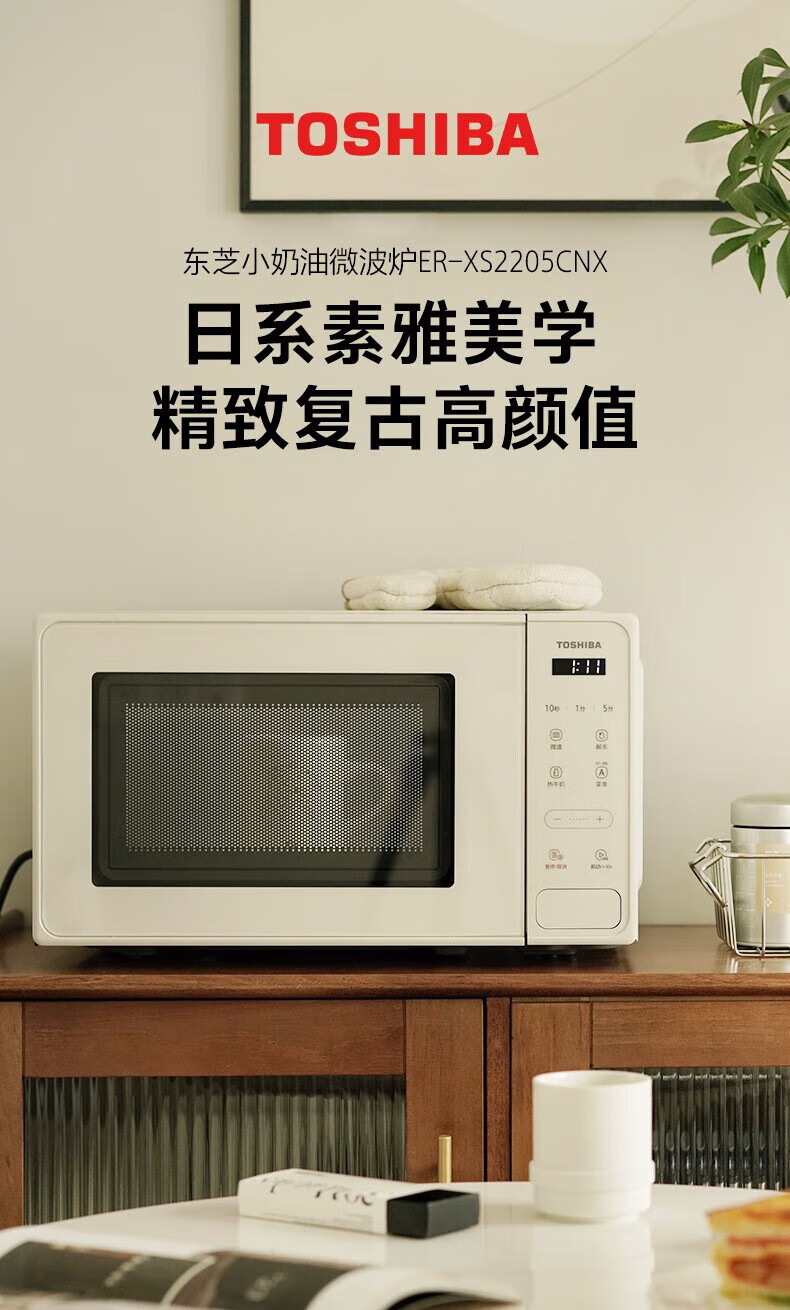 积分免费兑:东芝(TOSHIBA)微波炉小型迷你家用台式微波炉转盘式智能触控屏五档火力20L ER-XS2205CNX