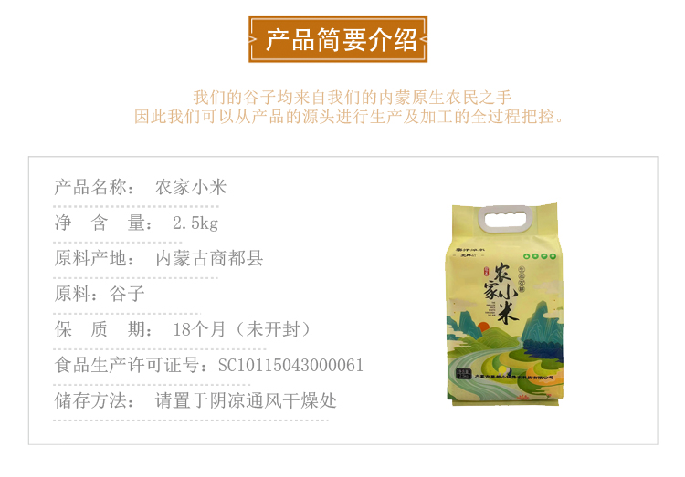 【薯都小镇·农家小米】袋装2.5KG 原生态农家小米 有机健康