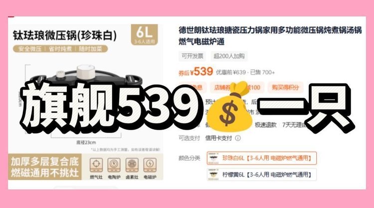 品牌退出中国市场疯狂清❗仅139❗原价539❗坏了直接换新❗德国百年国宝级厨具【德世朗马卡龙色6L钛合金涂层珐琅微压锅】焖煮炖煲样样精通