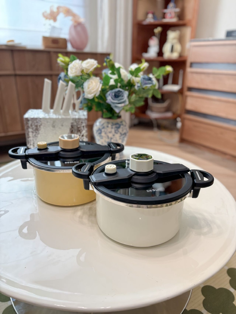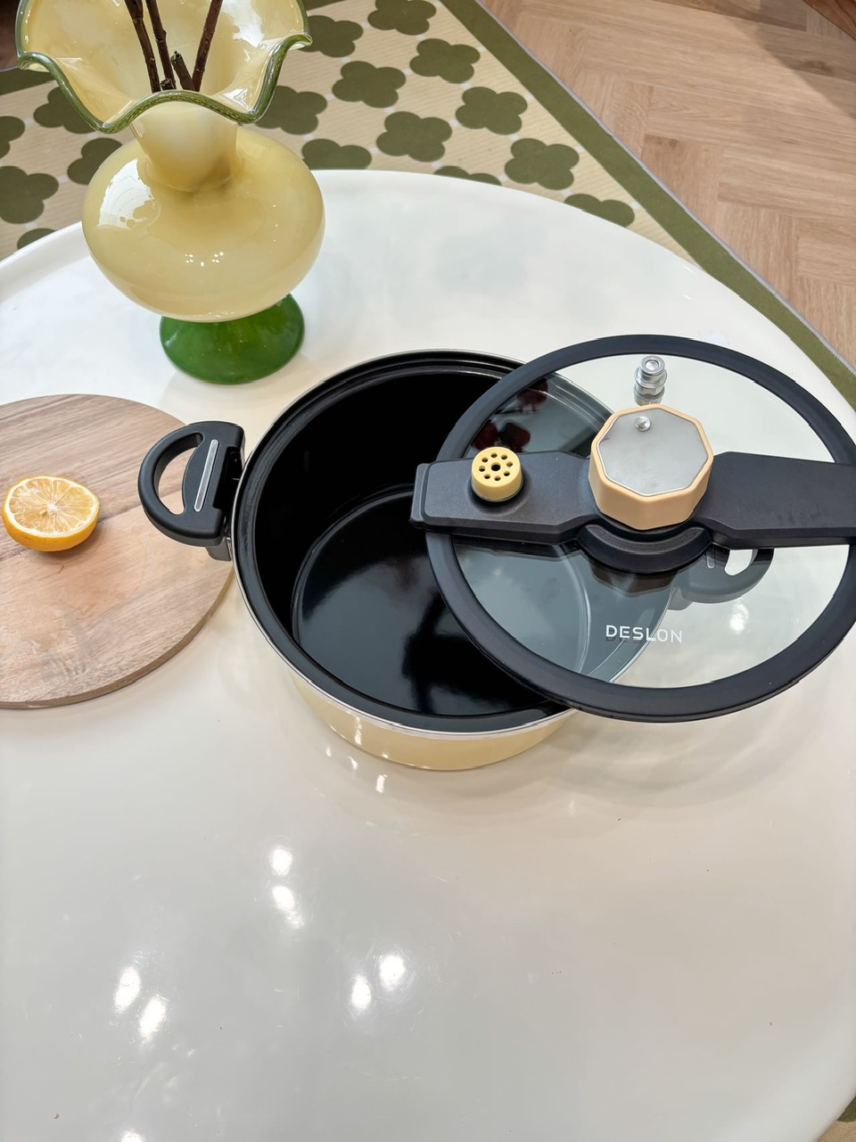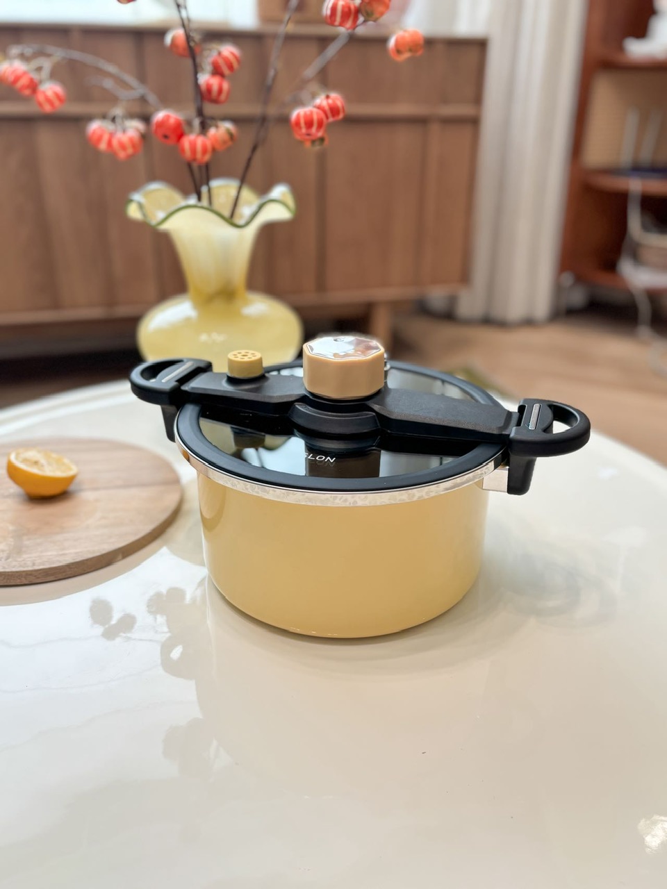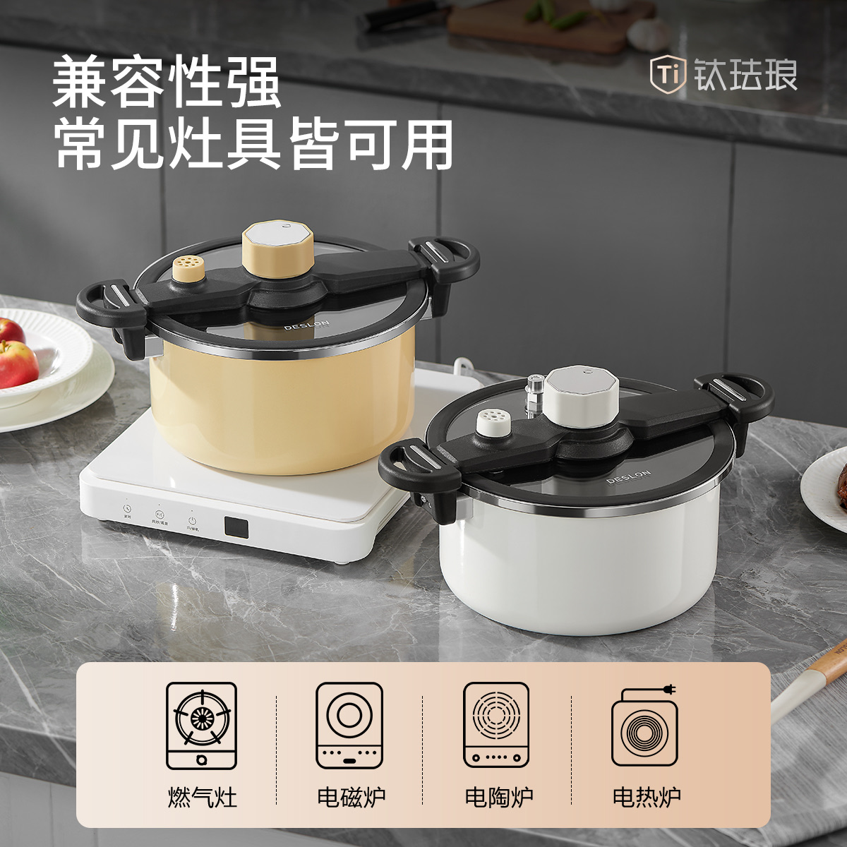 6L钛合金涂层珐琅微压锅(黄白二色)