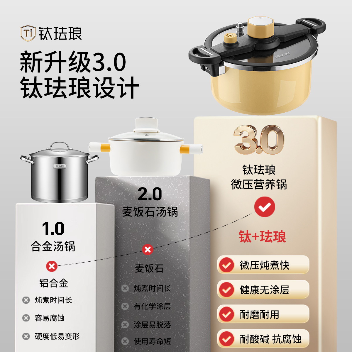 ✅钛合金涂层珐琅内胆,耐磨防刮