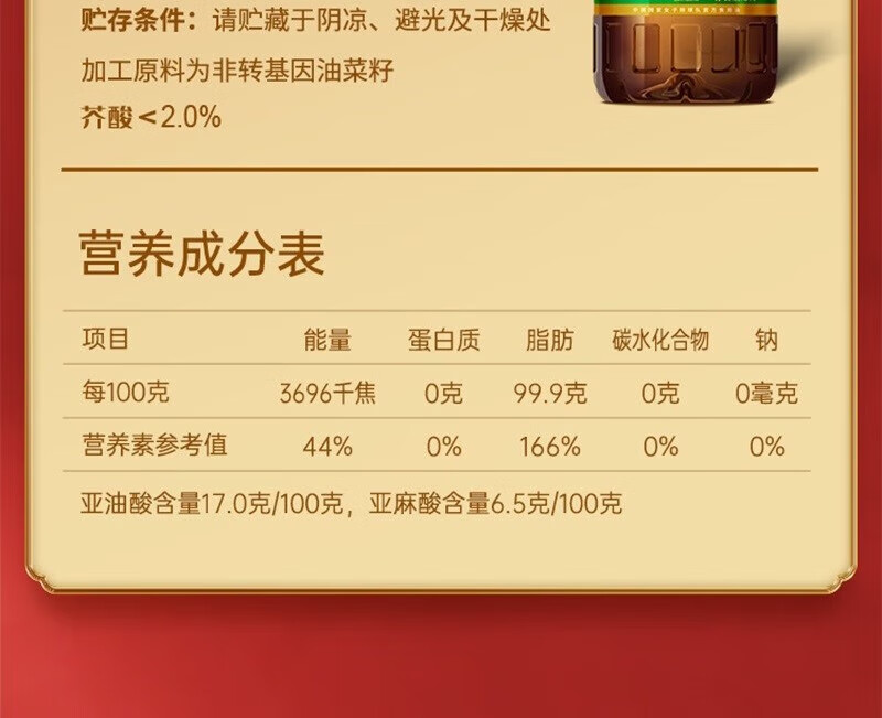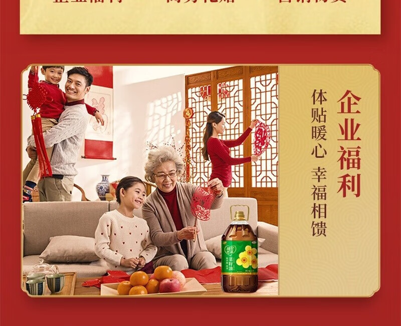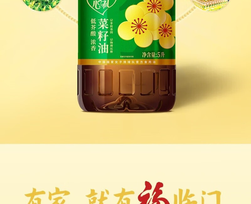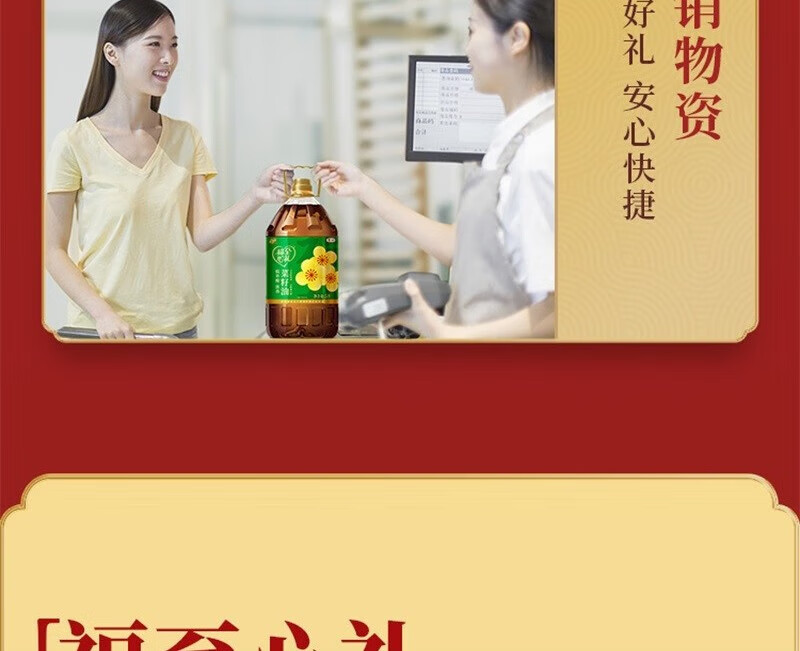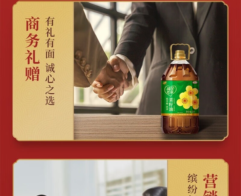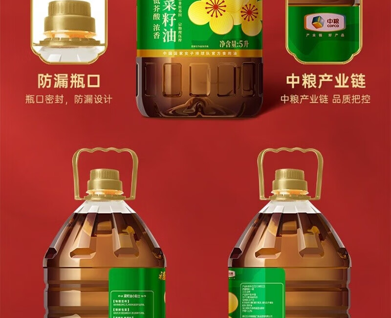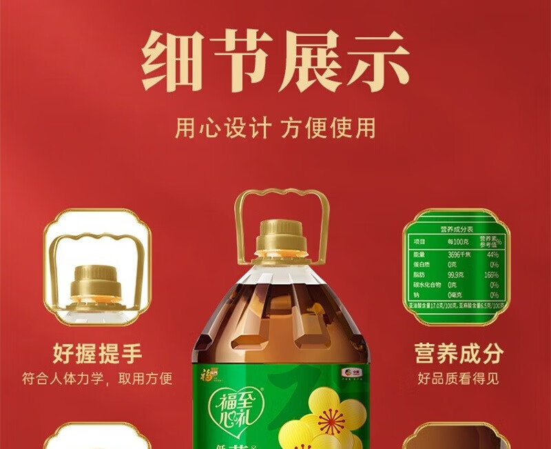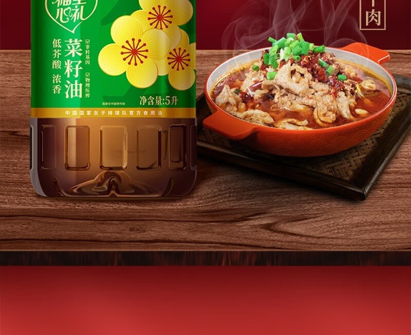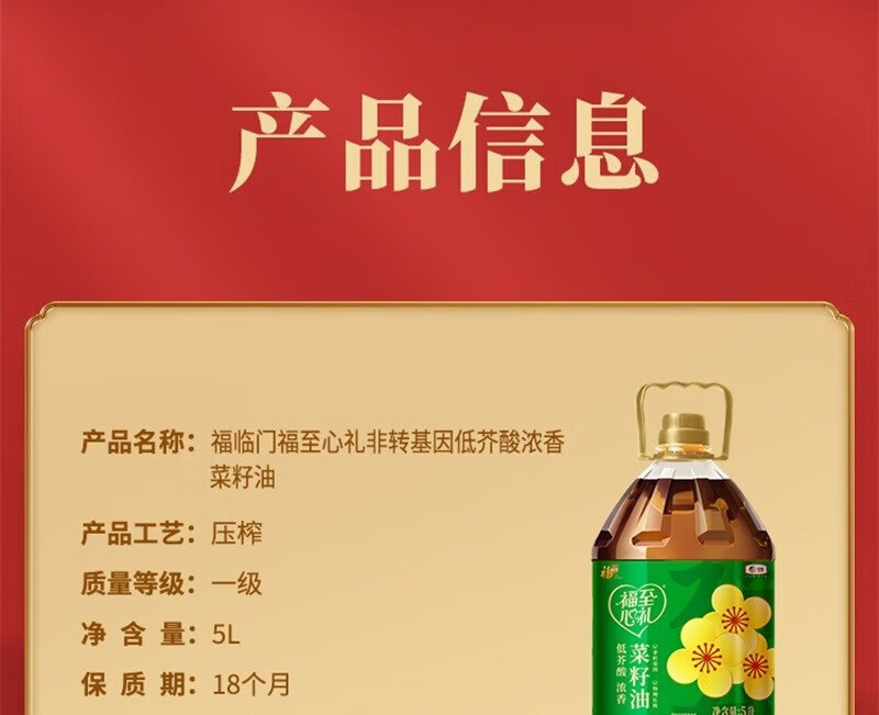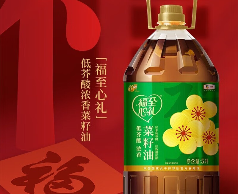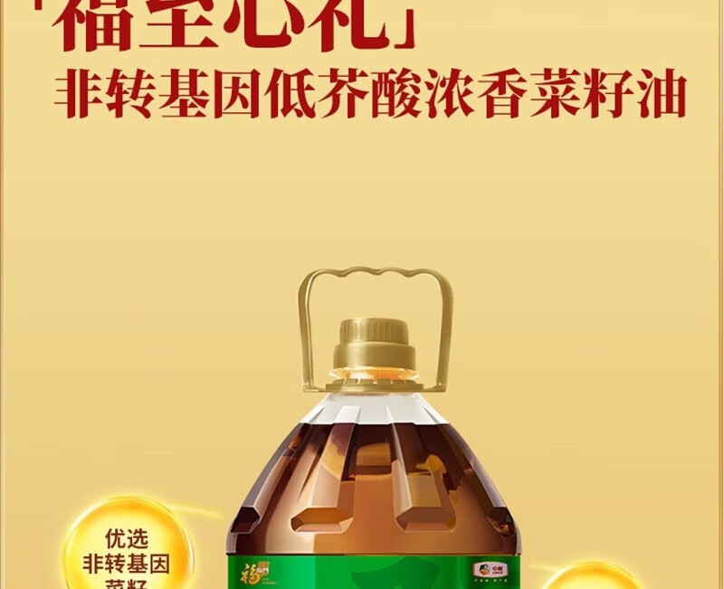 【福至心礼菜籽油】中粮福临门福至心礼低芥酸浓香菜籽油5L!健康升级,油烟少更安心,厨房烹饪好帮手!