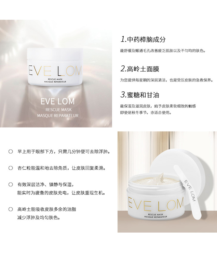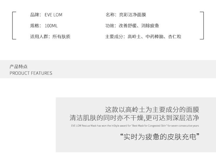EVELOM亮采洁净面膜100ml深层清洁改善暗沉水洗式面膜