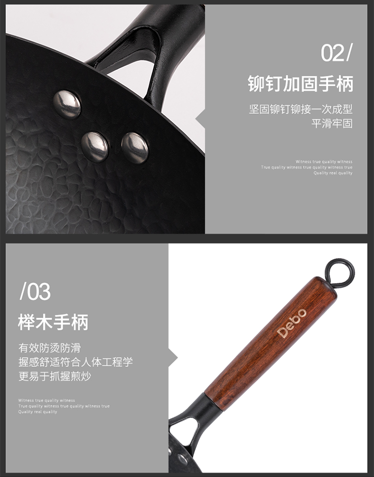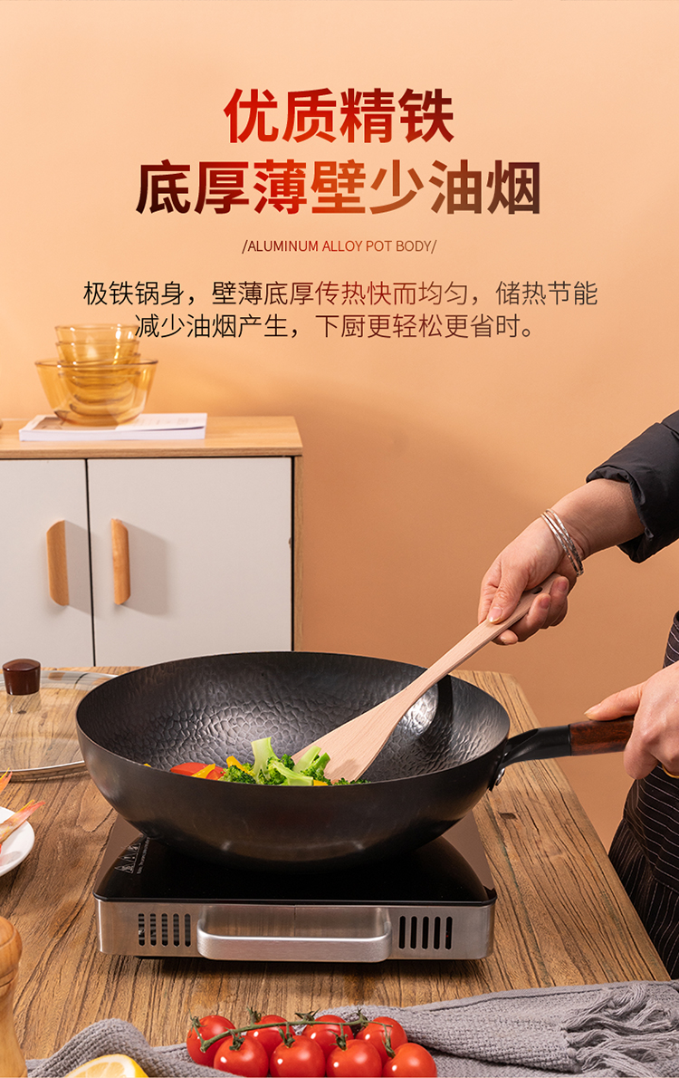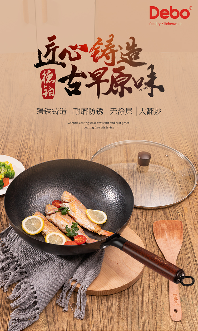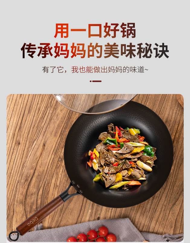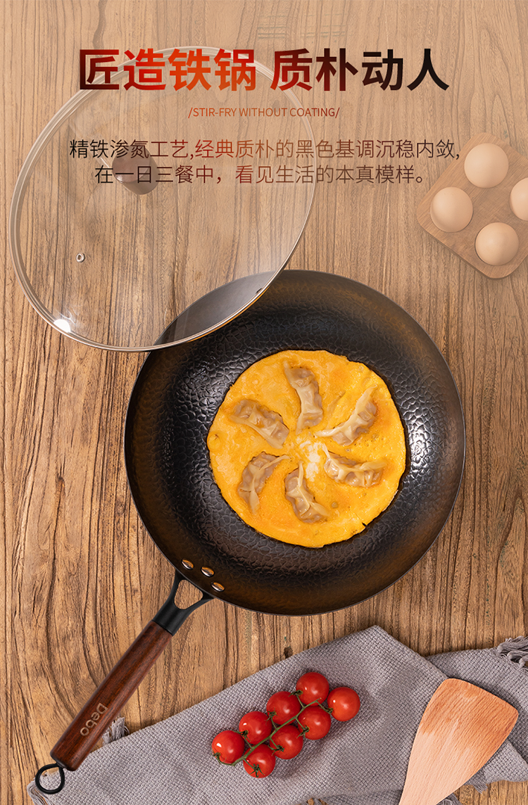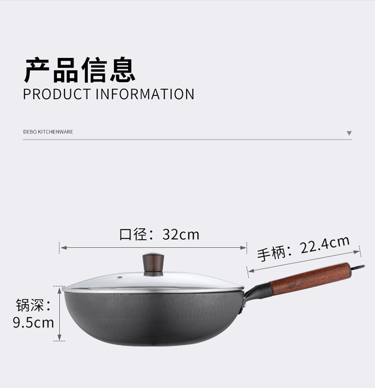 Debo德铂 新梅里萨炒锅32cm(带玻璃盖)无涂层精铁纹理炒锅