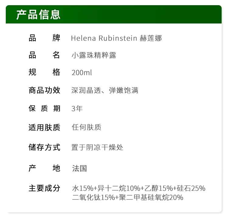 【保税直发】Helena Rubinstein 赫莲娜 小露珠精粹露200ml(新款)【2028-01-01】