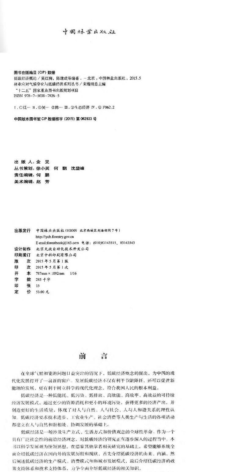 林业应对气候变化与低碳经济系列丛书 "十二五"国家重点 7926 科技