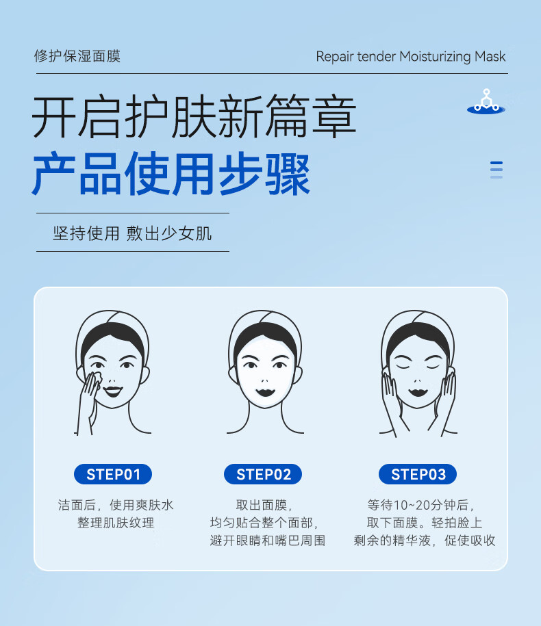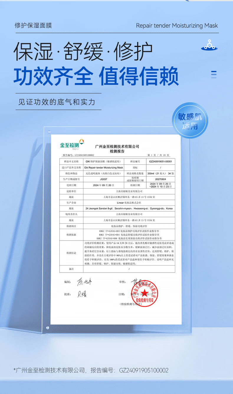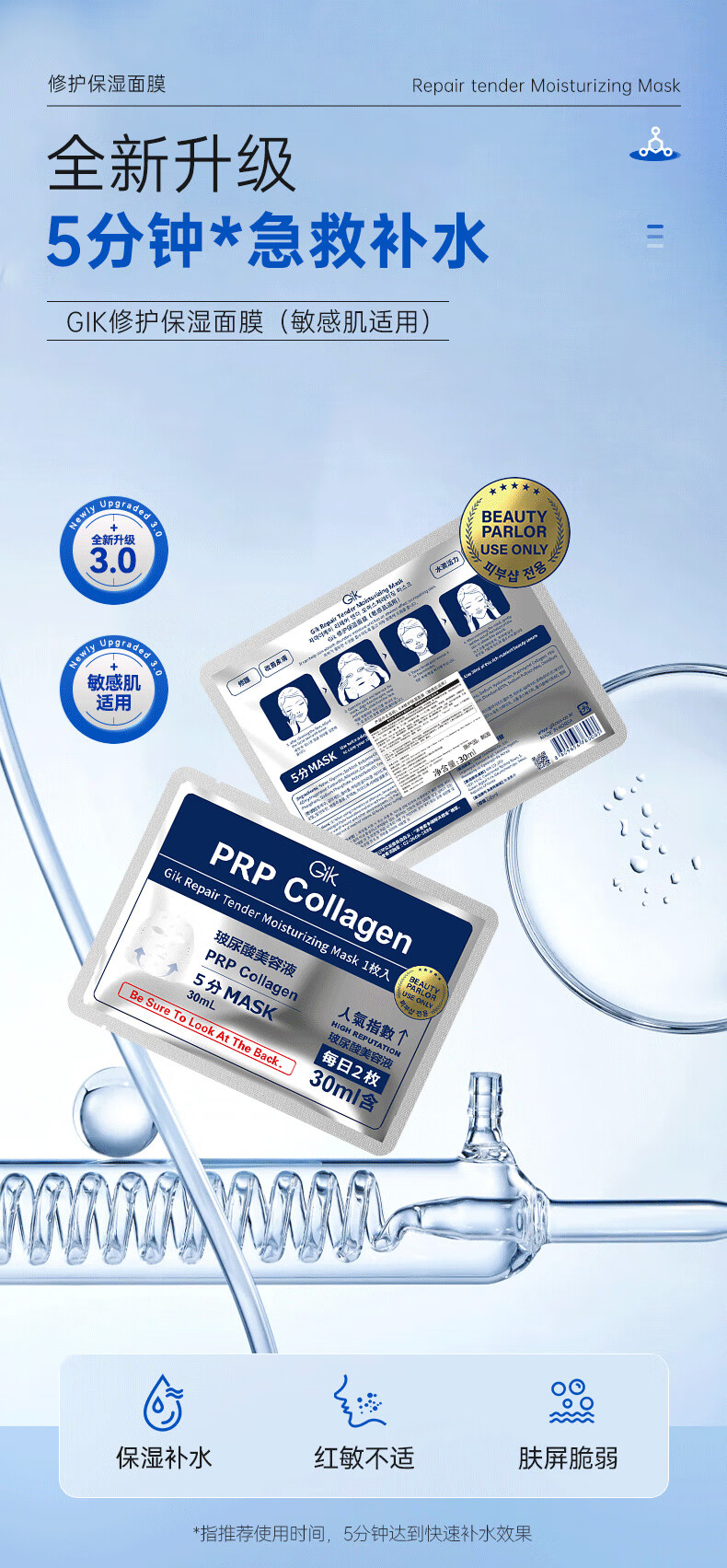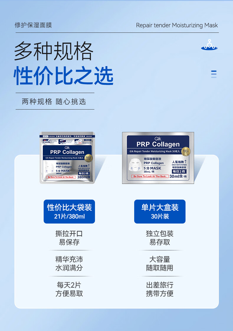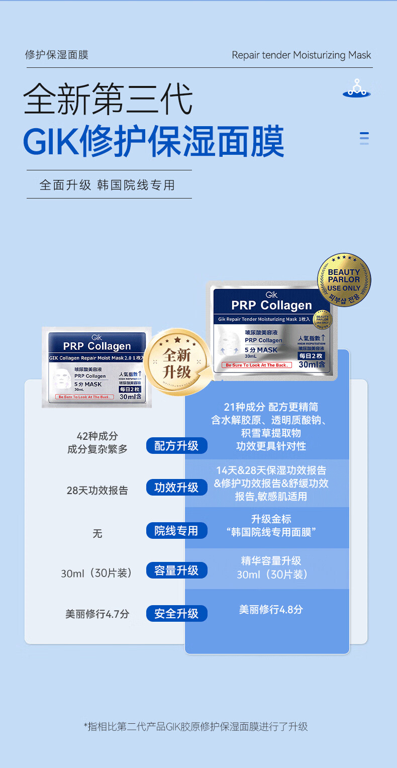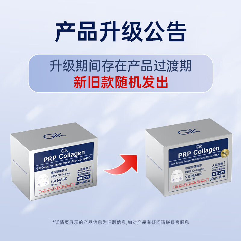Gik韩国进口 胶原蛋白保湿修护面膜玻尿酸补水保湿护肤 30片/盒