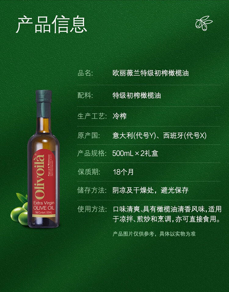 欧丽薇兰特级初榨橄榄油/500mL×2