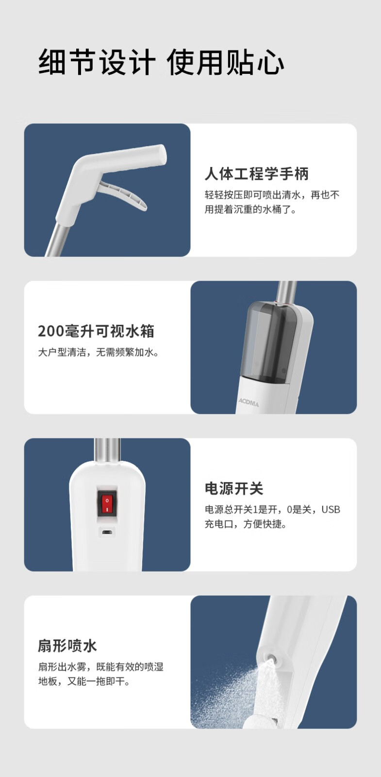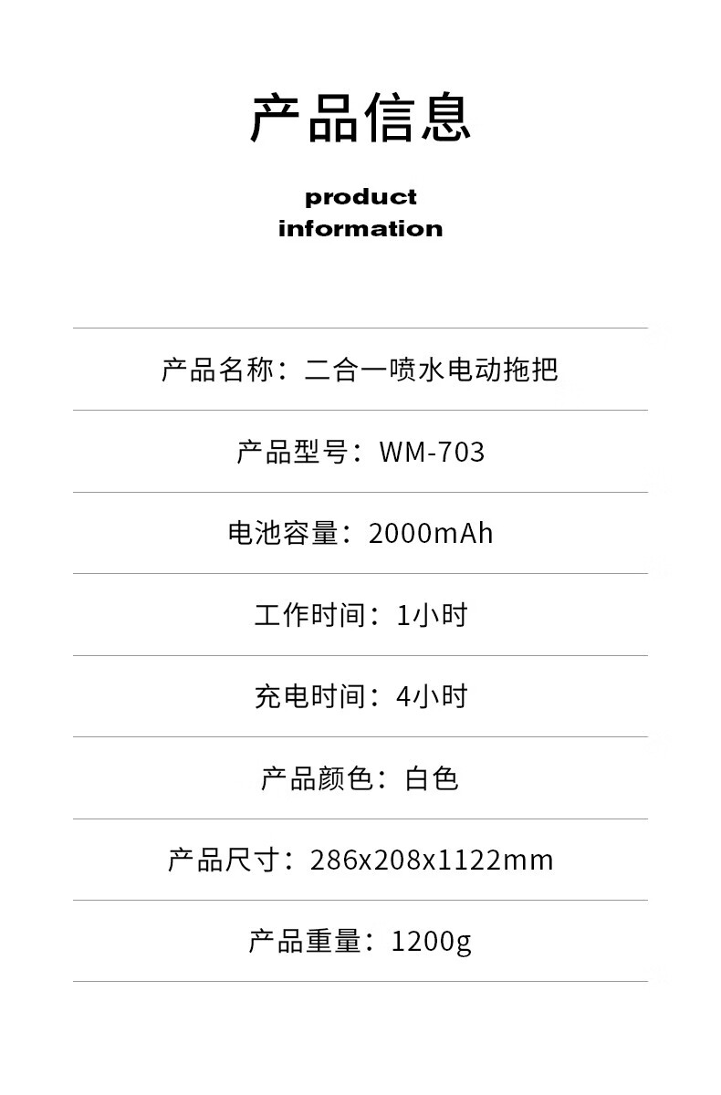 澳得迈(AODMA) 家用二合一喷水电动拖 WM-703 白色