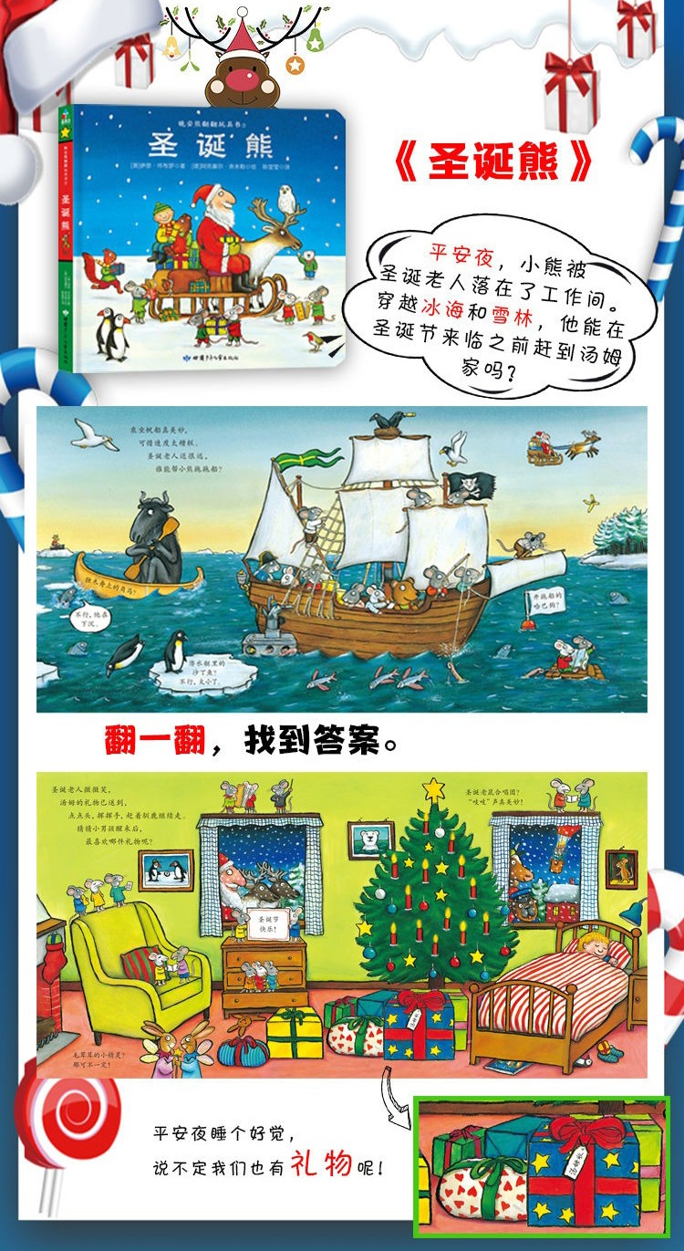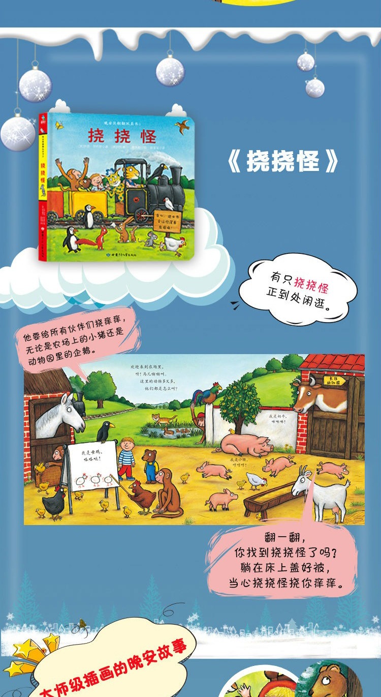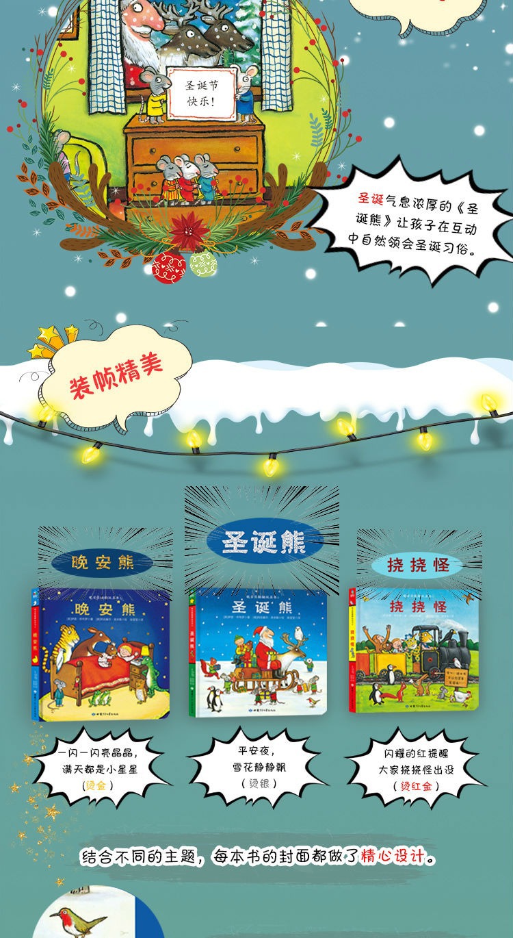翻翻书玩具书系列晚安熊 圣诞熊挠挠怪 3-6岁晚安翻翻纸板书德国大师级插画师绘制形象经典细节丰富幼儿宝宝睡前故事书绘本图画书