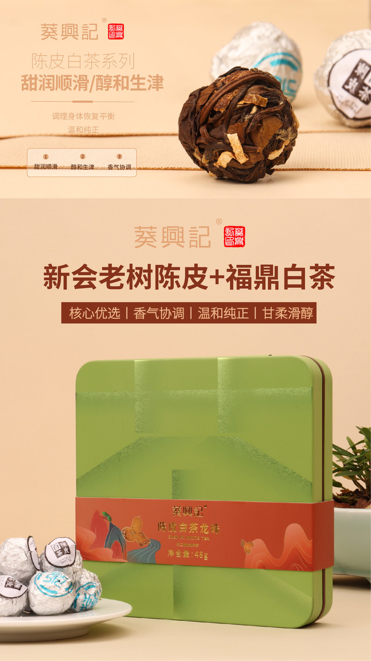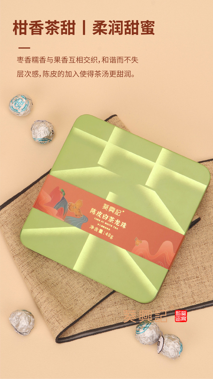 线上专享 48g葵興記陈皮白茶龙珠