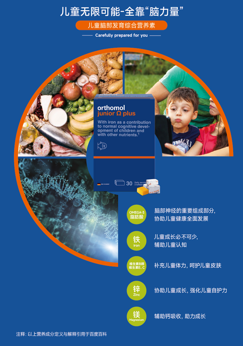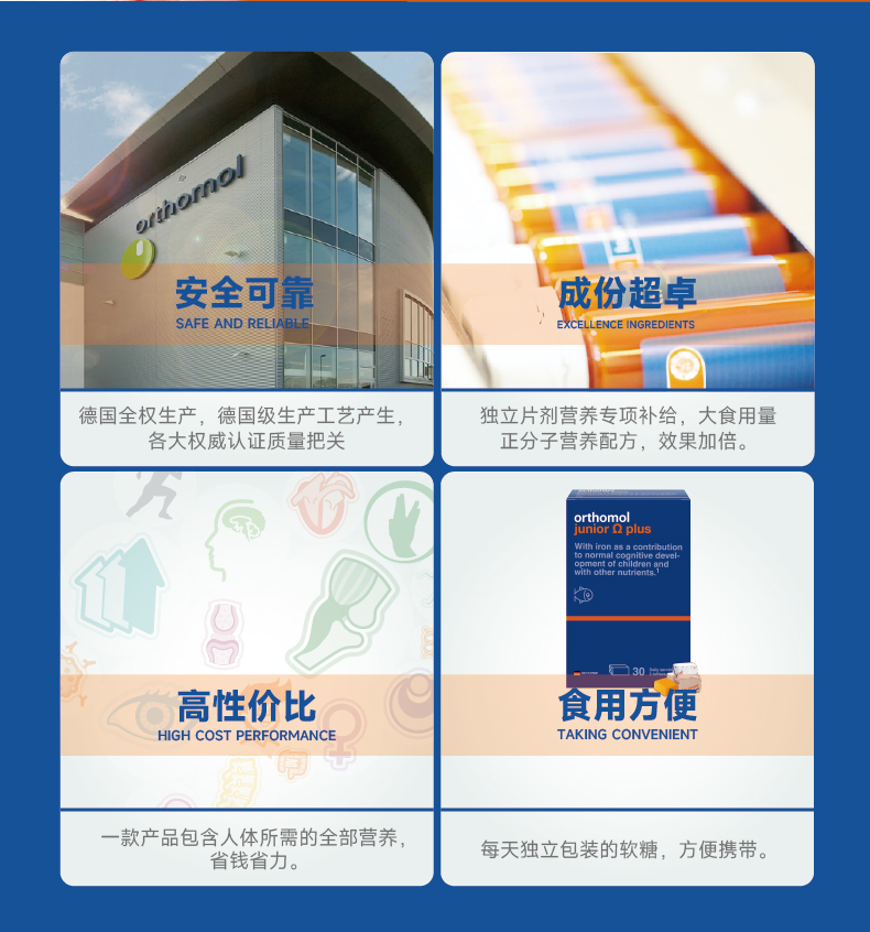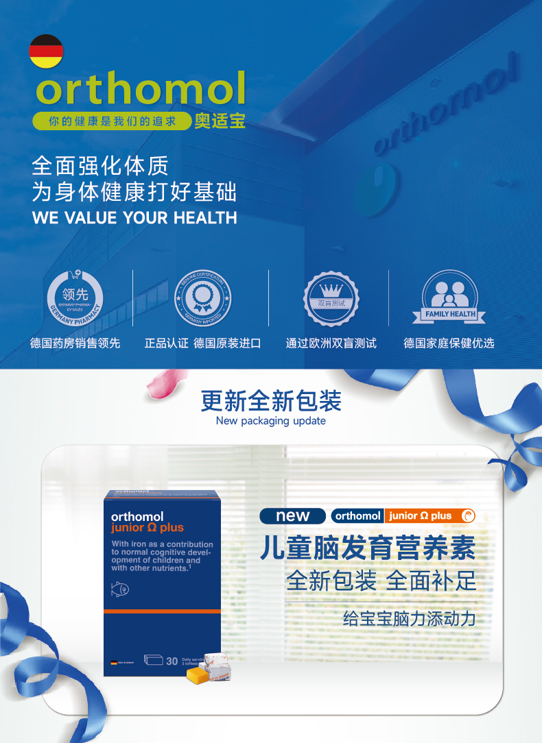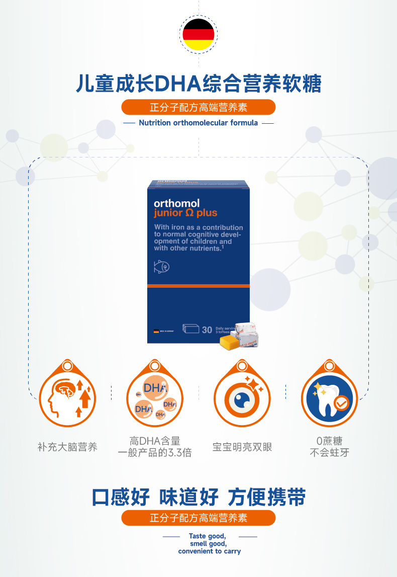 德国进口orthomol奥适宝 dha儿童专用鱼油成长omega小孩软糖 4岁以上