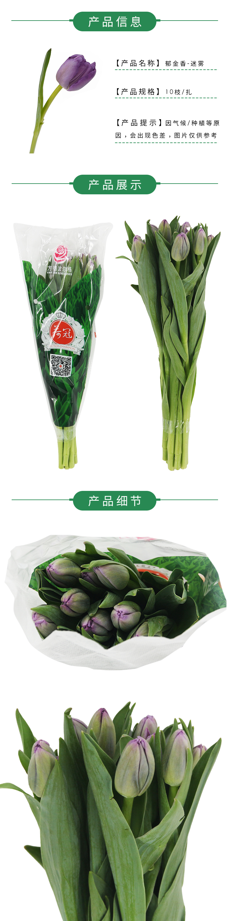 【单瓣郁金香】 迷雾 10枝一扎