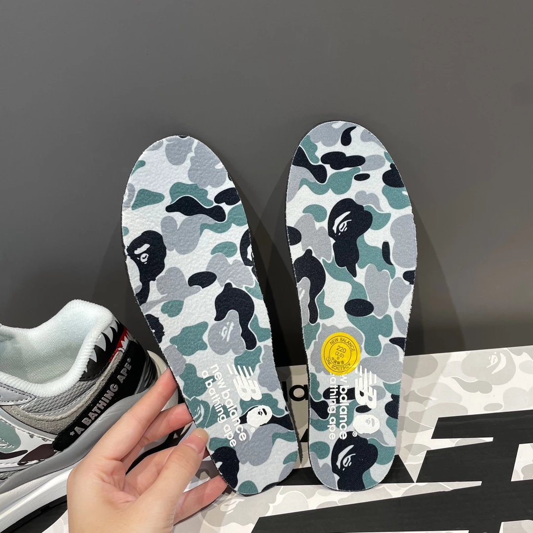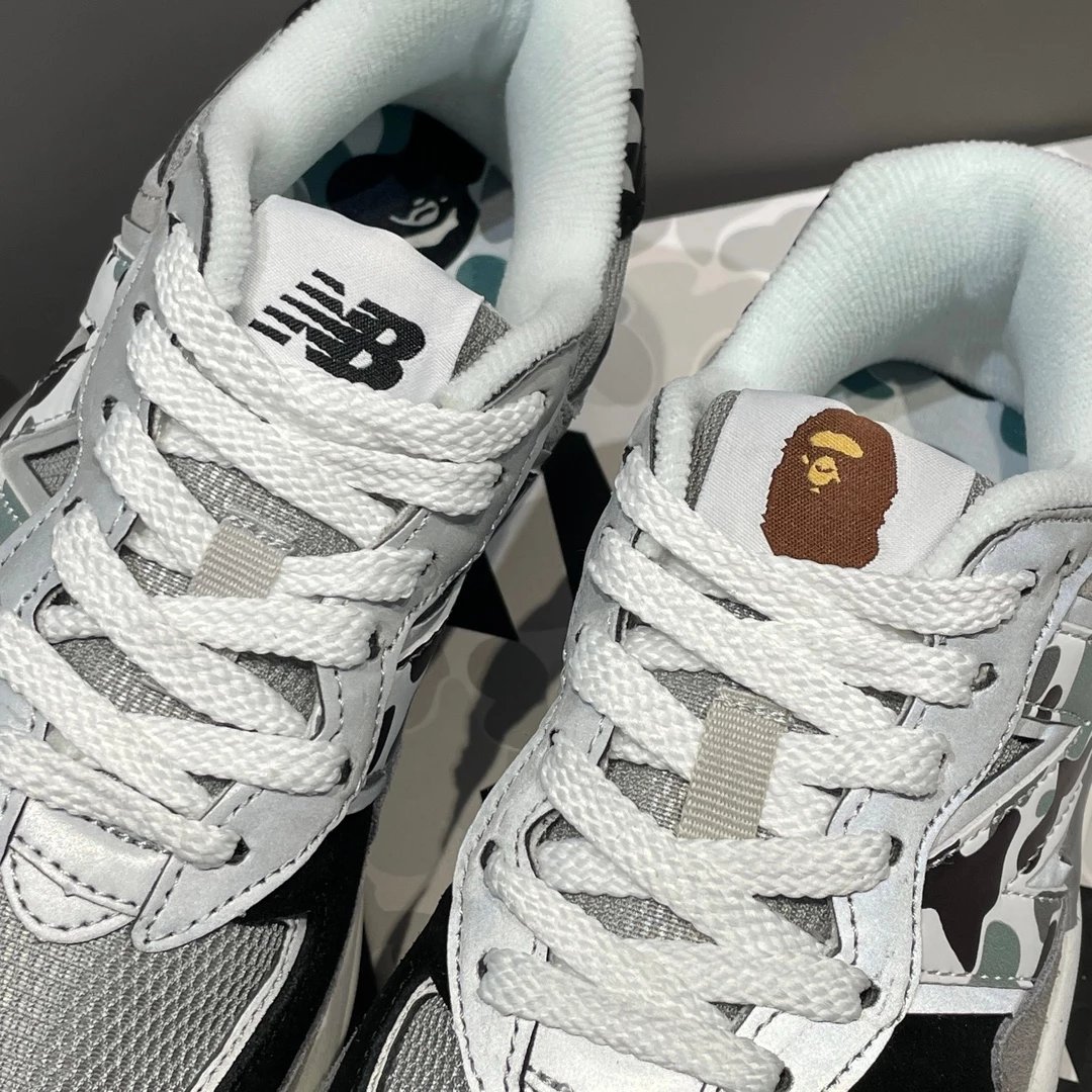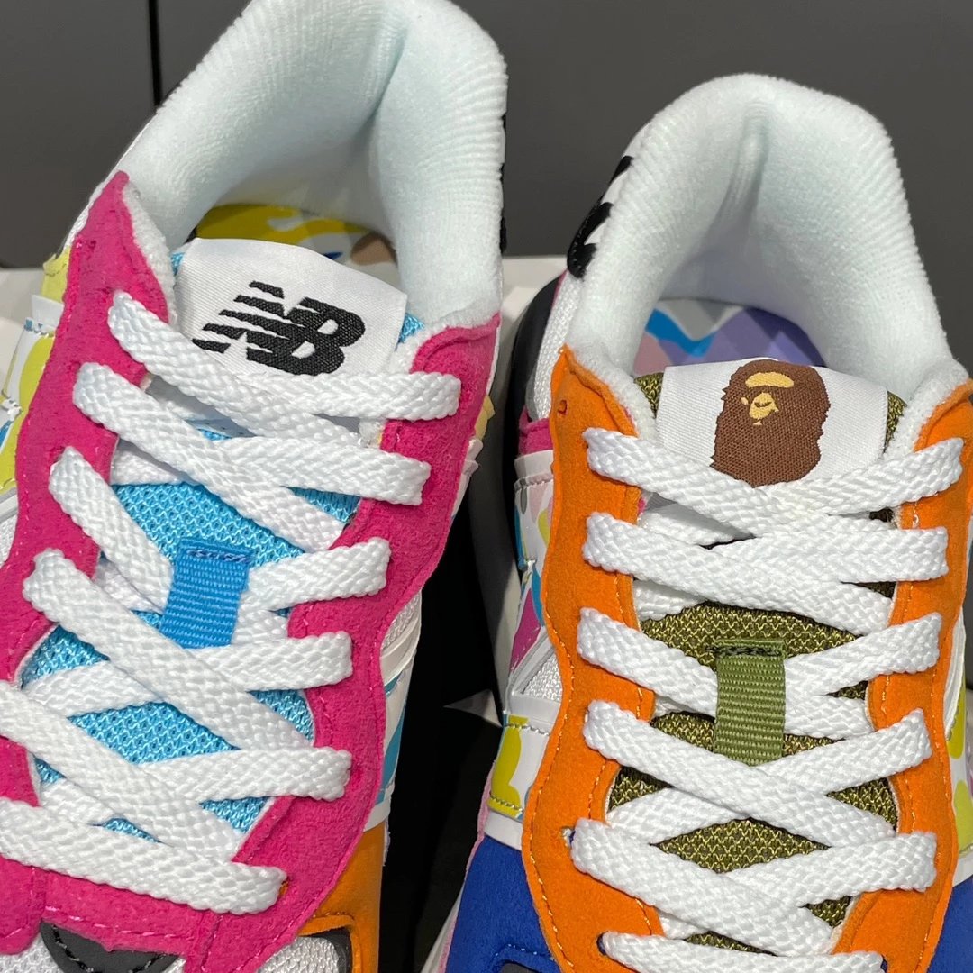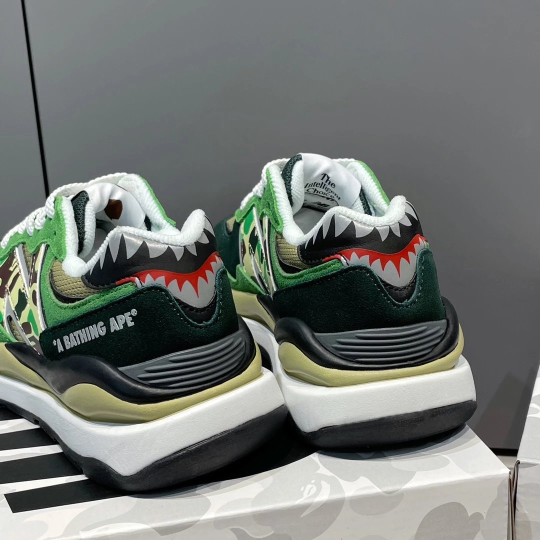 🌟一共8个配色 元祖灰 海军蓝 奶茶色 灰白色 浅咖色 黑灰迷彩 彩色拼接 黑绿迷彩 除了奶茶色只有女码 其它配色都是男女码哈 颜色上你们听我的 没有元祖灰的先入手元祖灰 经典中的经典 比你想象中还要好看还要百搭!已经有了的 试试海军蓝也很不错 男生女生都适合哈 特别是当情侣鞋简直绝了!然后还有奶茶色和浅咖色 真的超级适合秋冬搭配 奶茶色很温柔很日常 浅咖色很复古很有氛围感! 上面说的都是经典色 还有联名色哈 5740经典鞋型搭配上bape标志性迷彩元素 不仅特别还非常的有辨识度 整体给人的感觉超不一样!黑灰迷彩低调内敛 黑绿迷彩山系户外 彩色拼接出挑吸睛! 总之就是各有各的好看哈 大家自己看啦!!