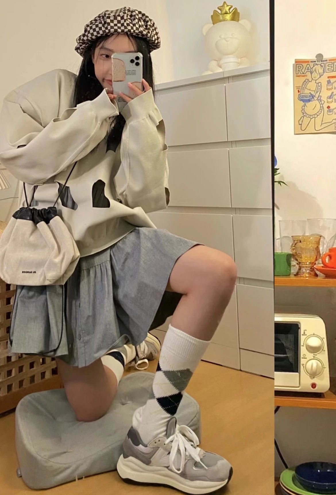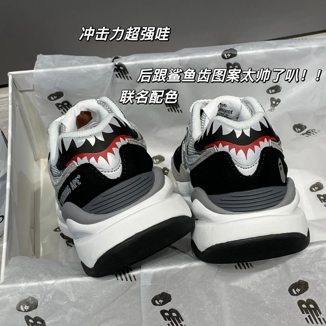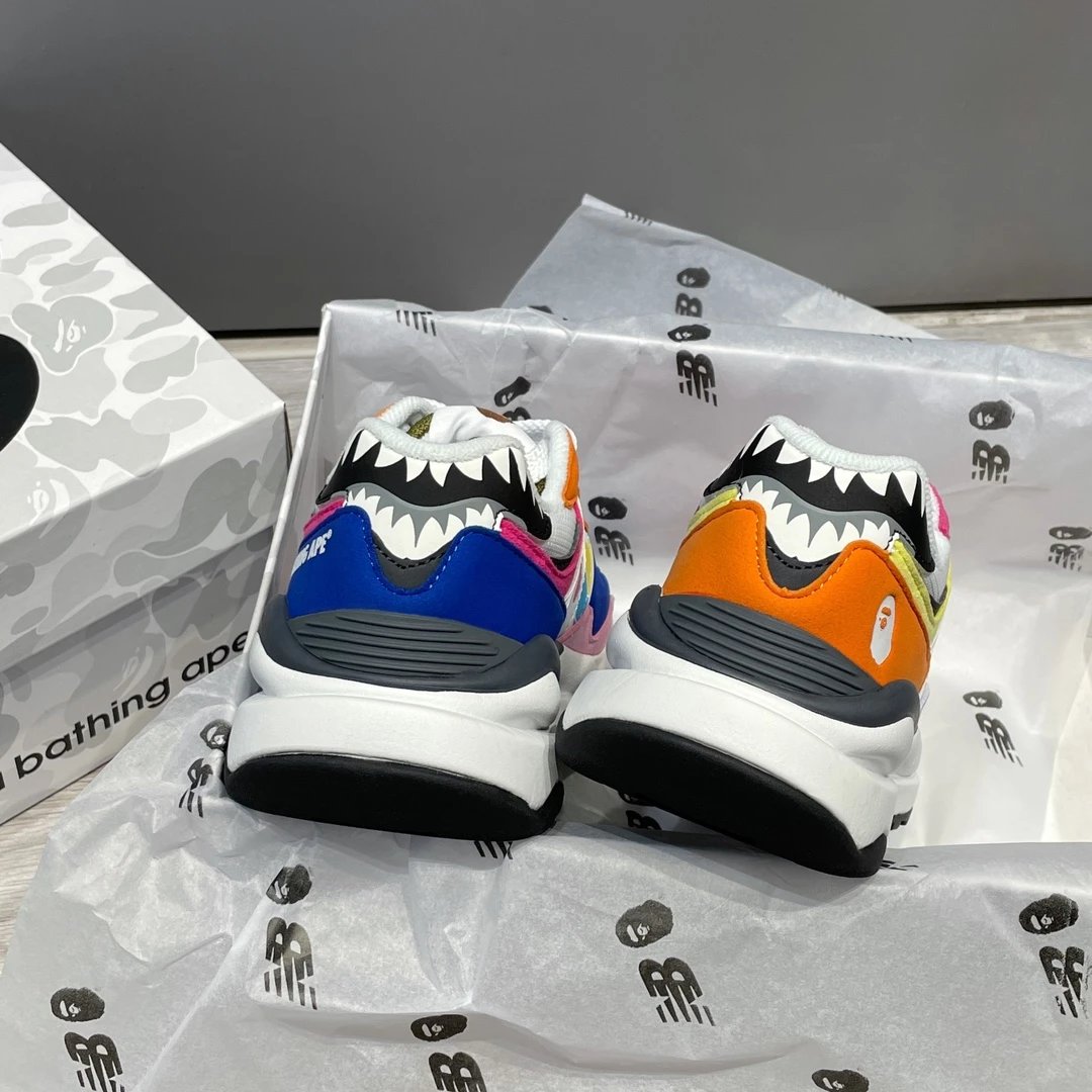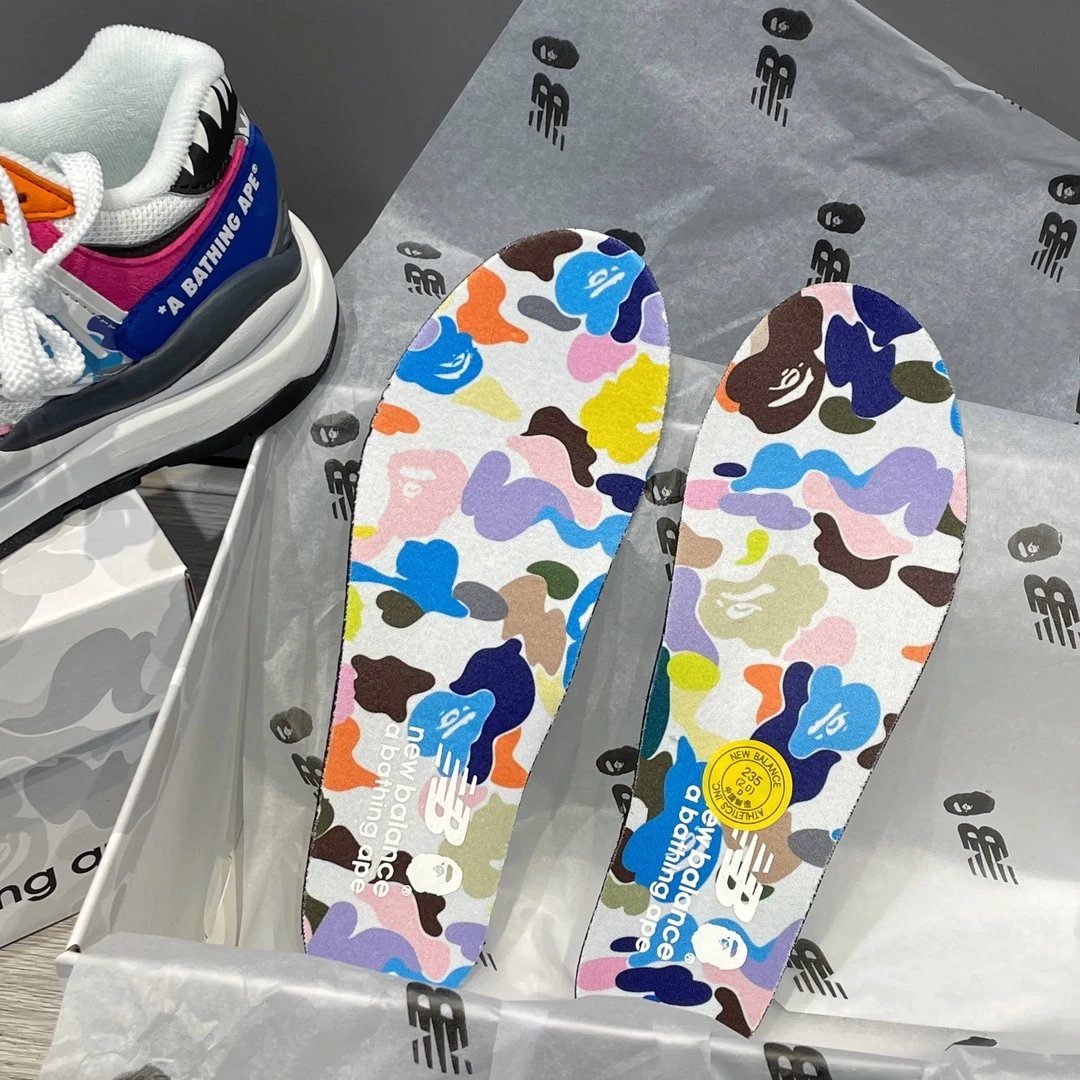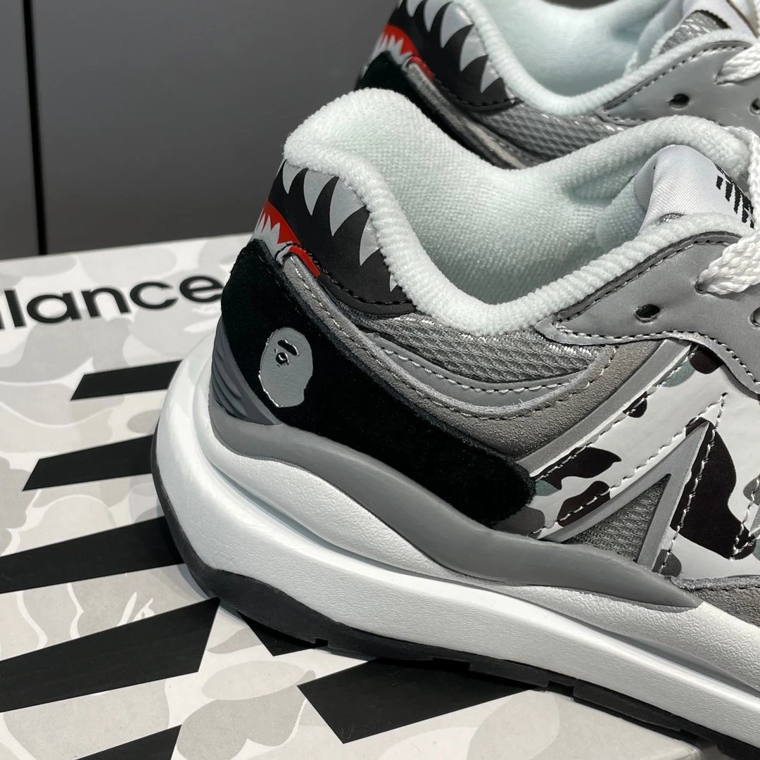 🌟一共8个配色 元祖灰 海军蓝 奶茶色 灰白色 浅咖色 黑灰迷彩 彩色拼接 黑绿迷彩 除了奶茶色只有女码 其它配色都是男女码哈 颜色上你们听我的 没有元祖灰的先入手元祖灰 经典中的经典 比你想象中还要好看还要百搭!已经有了的 试试海军蓝也很不错 男生女生都适合哈 特别是当情侣鞋简直绝了!然后还有奶茶色和浅咖色 真的超级适合秋冬搭配 奶茶色很温柔很日常 浅咖色很复古很有氛围感! 上面说的都是经典色 还有联名色哈 5740经典鞋型搭配上bape标志性迷彩元素 不仅特别还非常的有辨识度 整体给人的感觉超不一样!黑灰迷彩低调内敛 黑绿迷彩山系户外 彩色拼接出挑吸睛! 总之就是各有各的好看哈 大家自己看啦!!