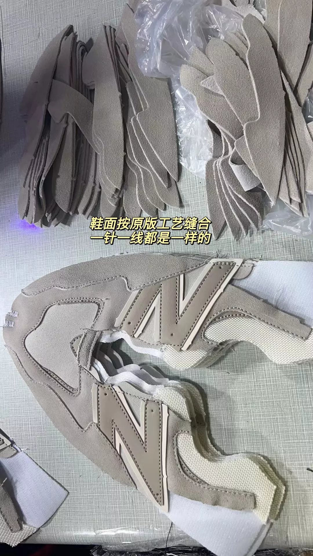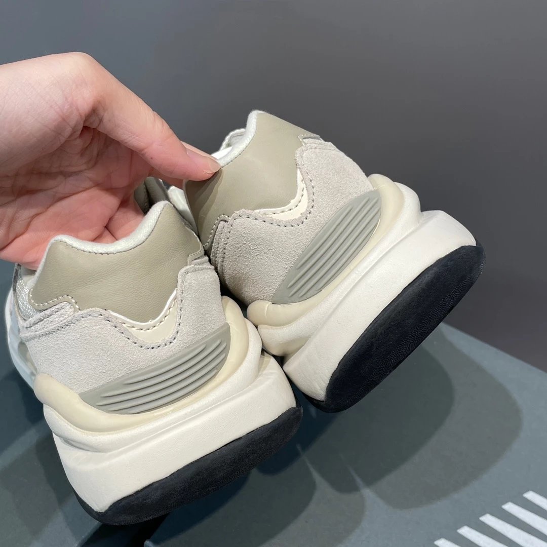 鞋面用到麂皮、织物网布、皮革等材质拼接构成 层次感丰富 重点拿在手里超有质感的哈!