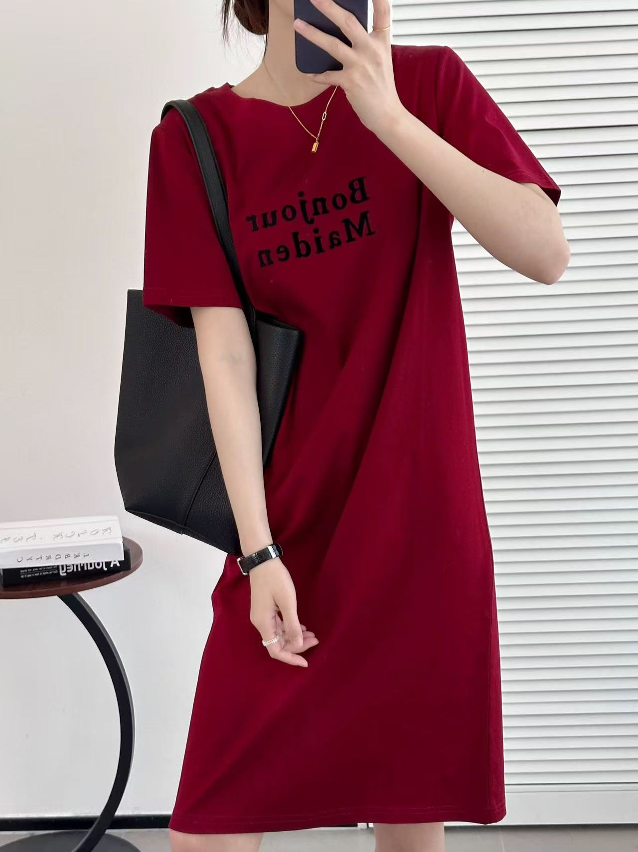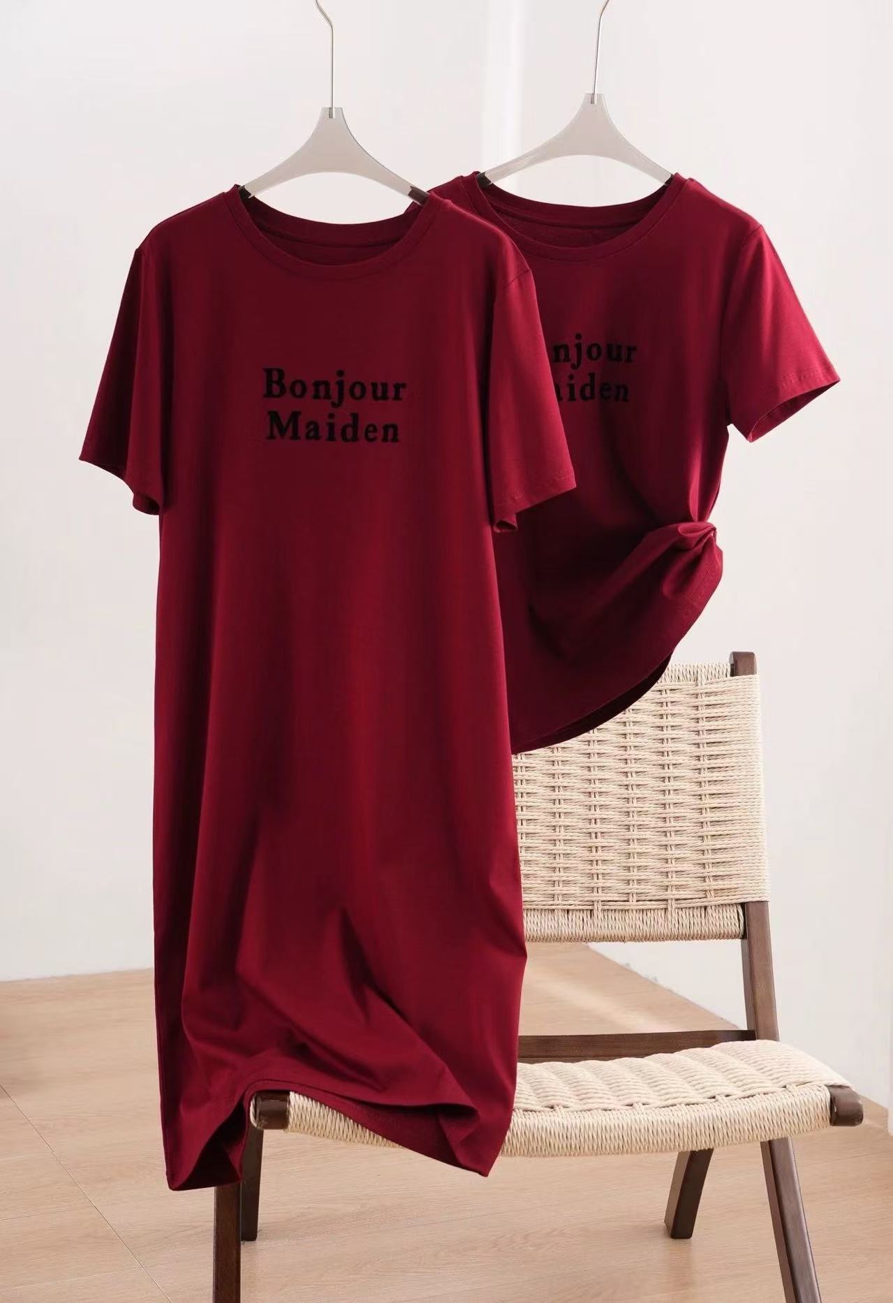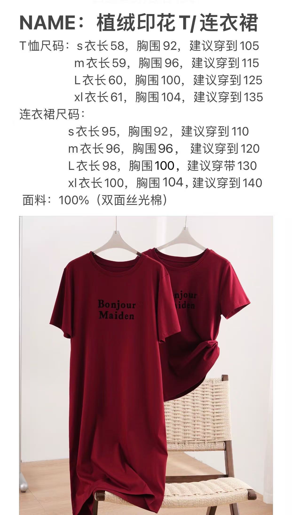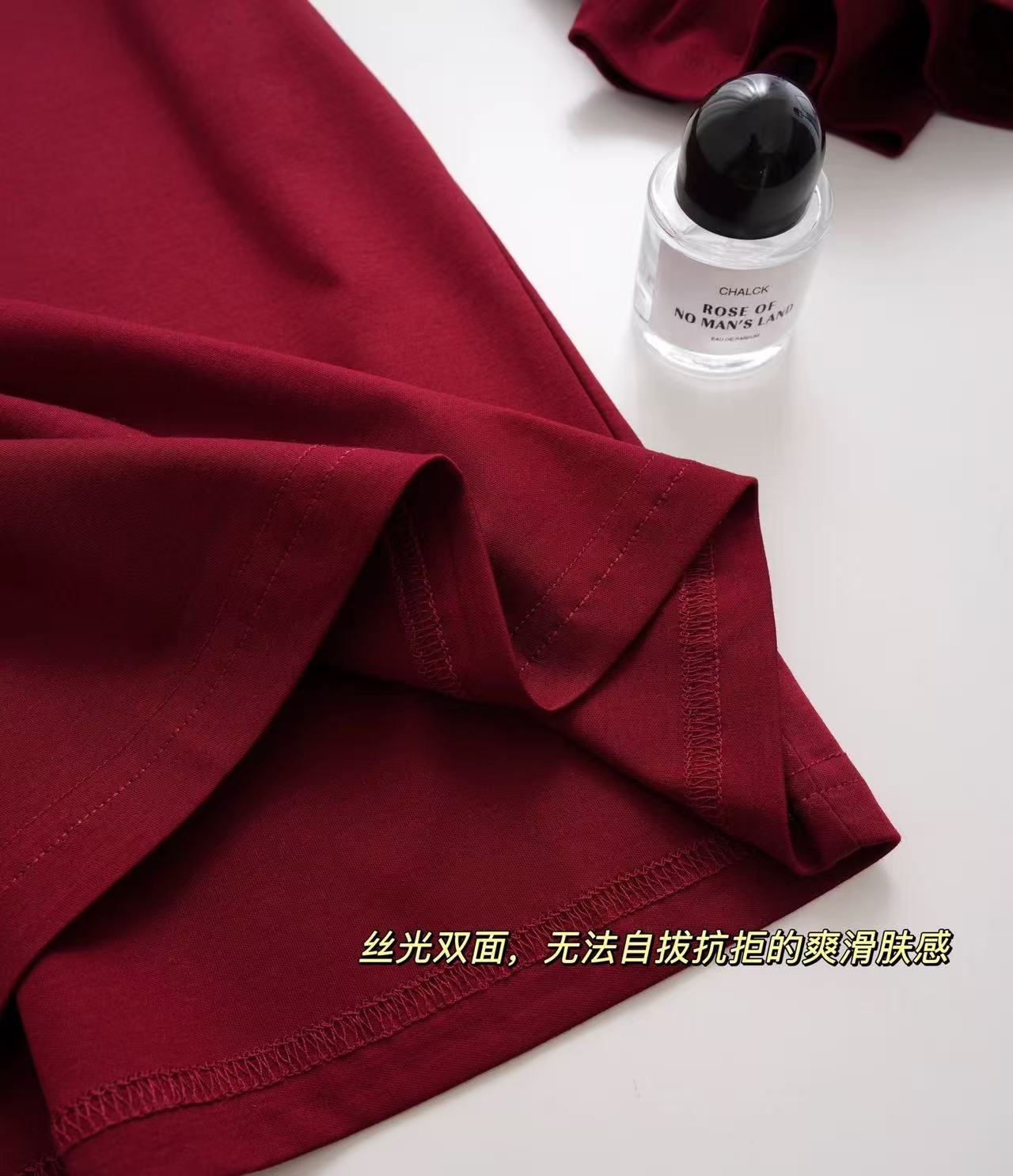 优选丨【波尔多红】笑*阁同款‼️普通棉的双倍成本‼️双面丝光棉植绒印花T/连衣裙