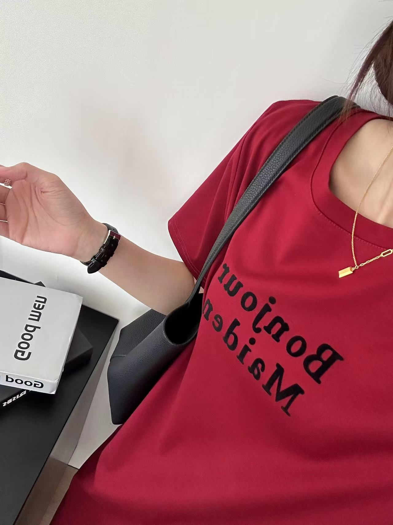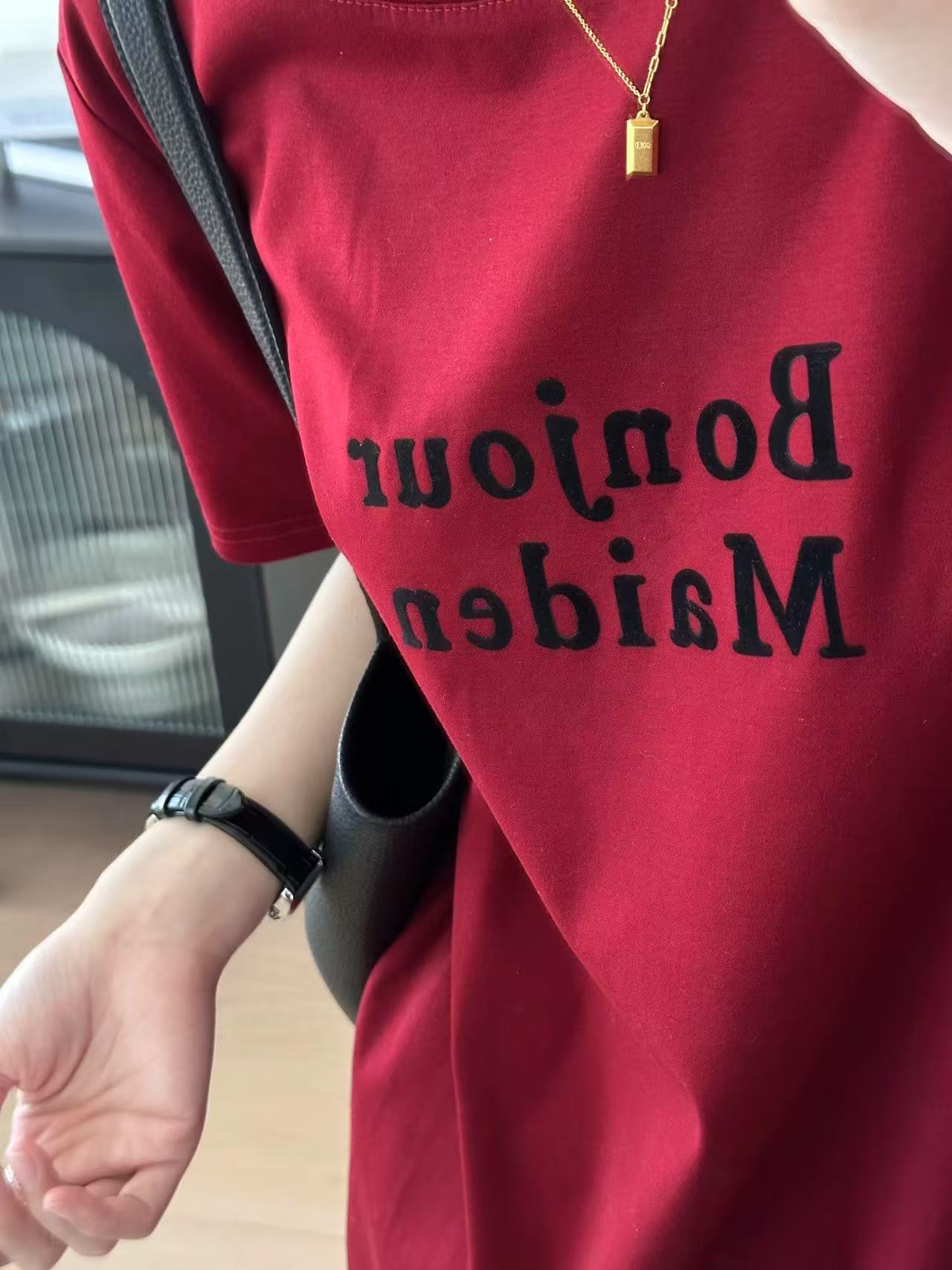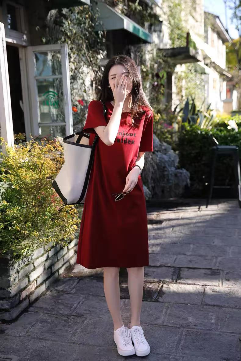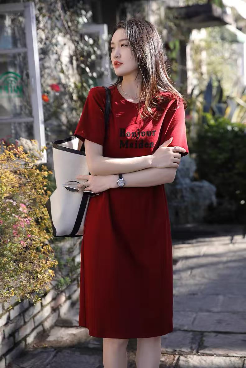 优选丨【波尔多红】笑*阁同款‼️普通棉的双倍成本‼️双面丝光棉植绒印花T/连衣裙