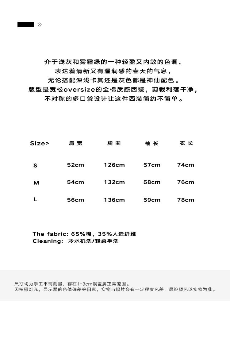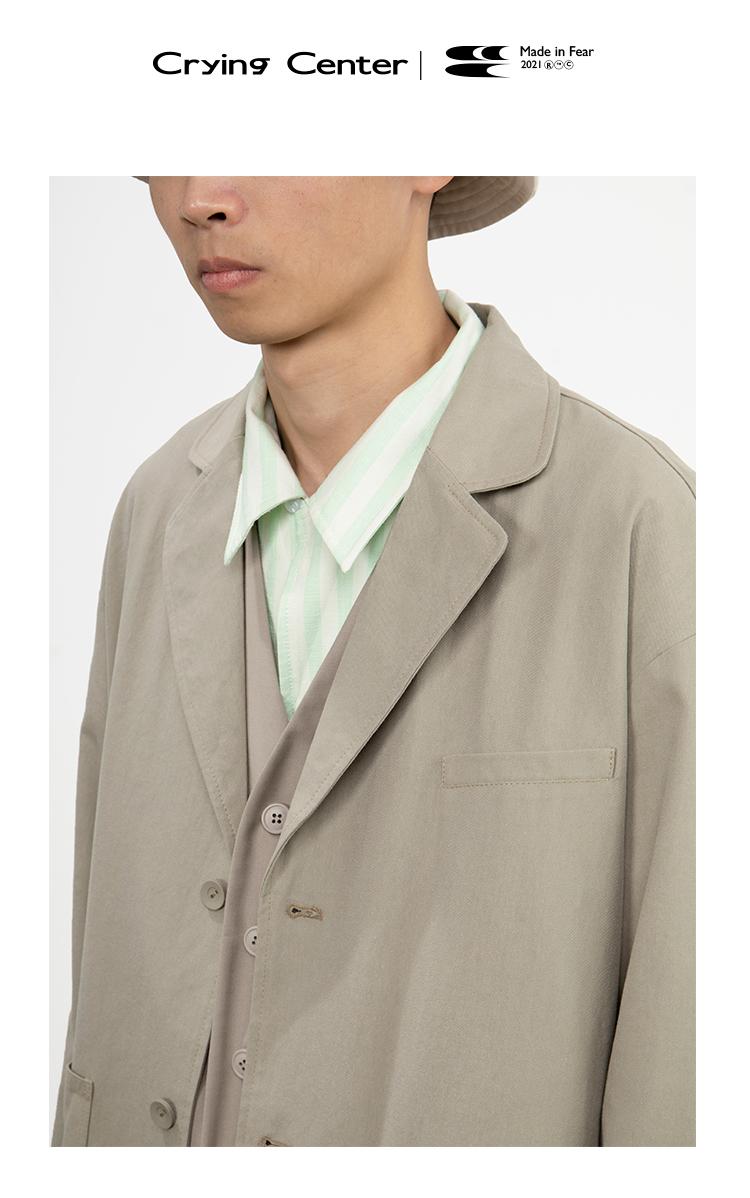CryingCenter 香根草灰绿日系雾棉感不对称口袋宽松西装 哭喊中心
