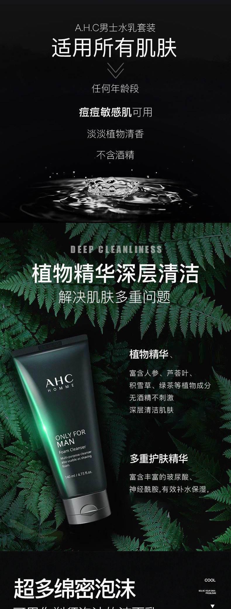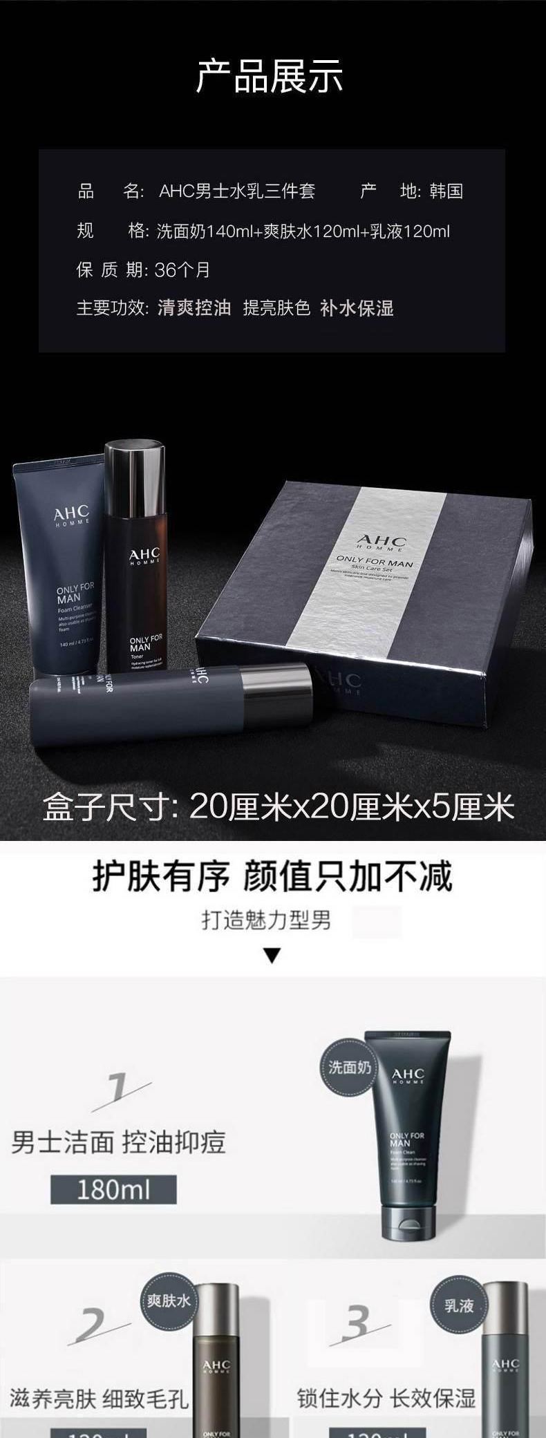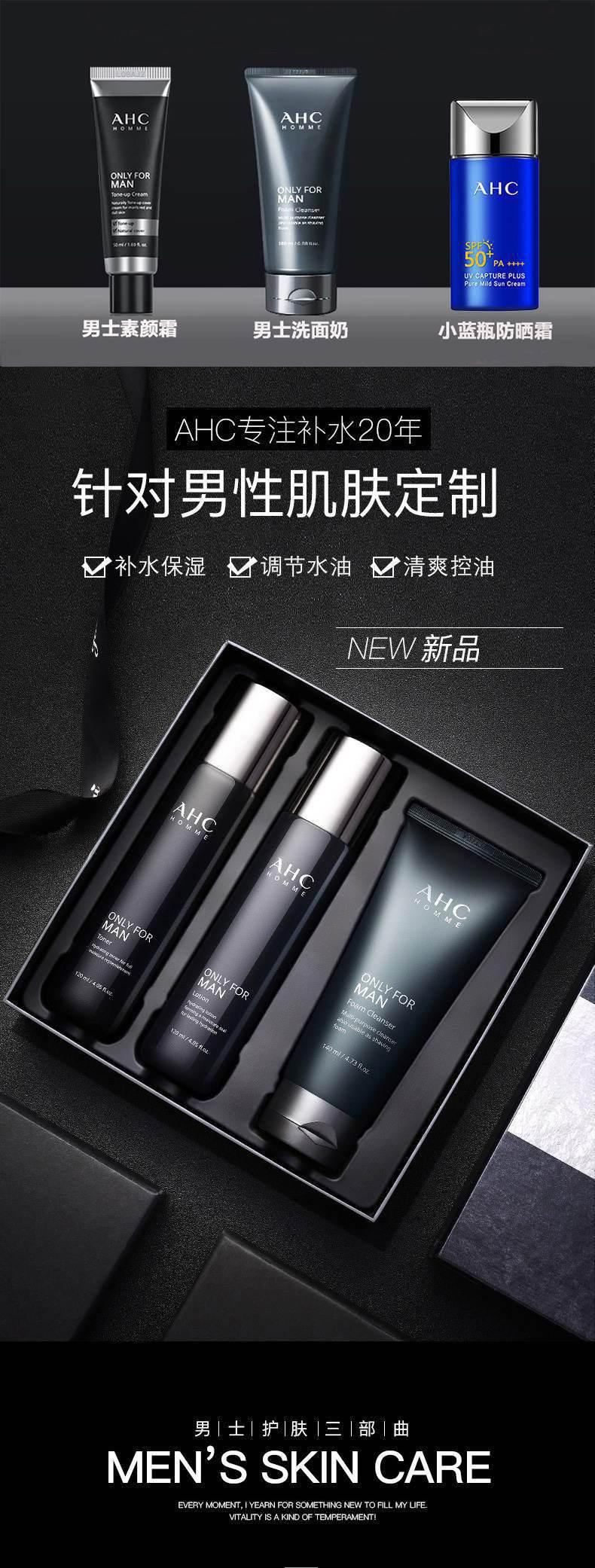 AHC爱和纯 男士水润洁面补水保湿三件套(水120ml+乳120ml+洁面140ml)