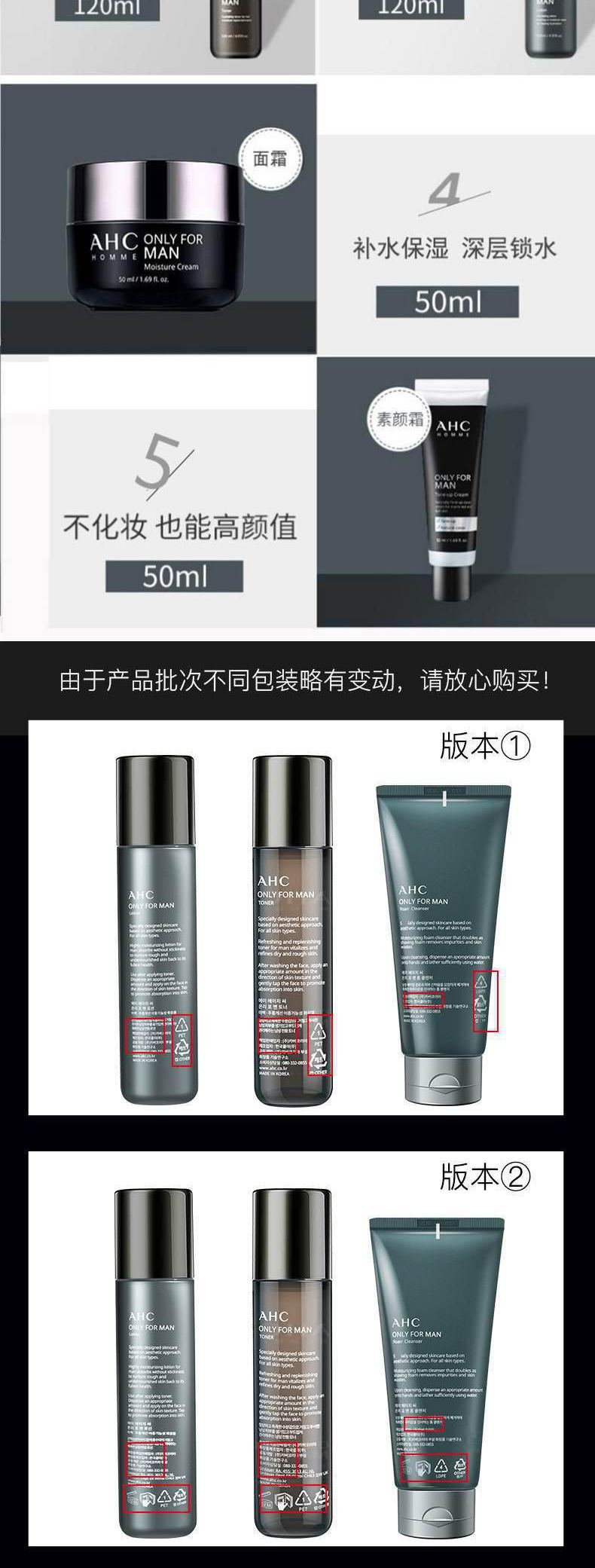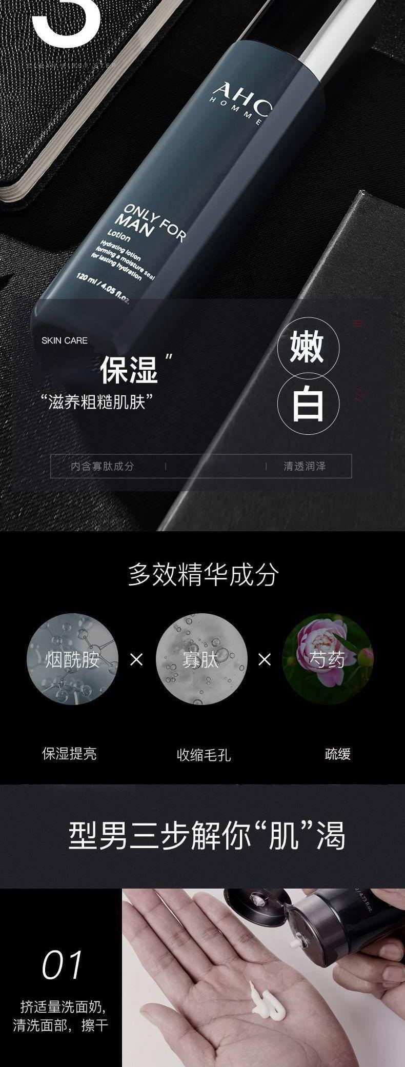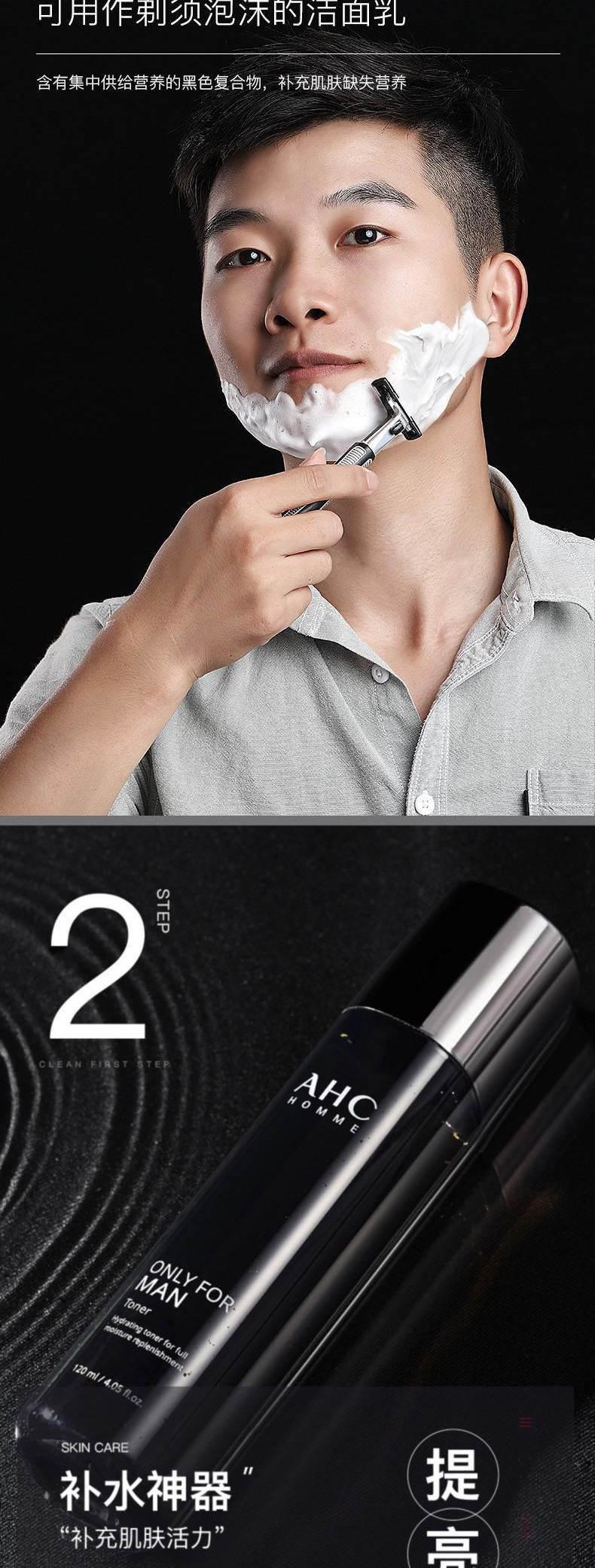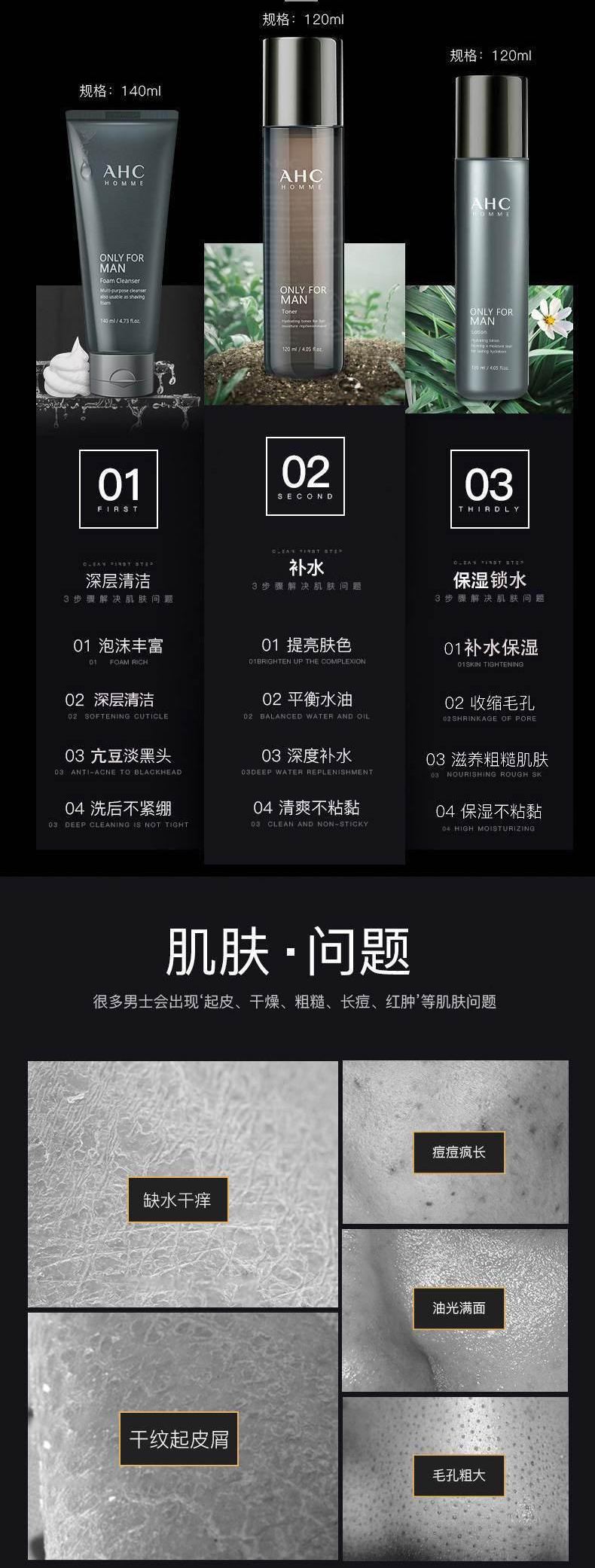 AHC爱和纯 男士水润洁面补水保湿三件套(水120ml+乳120ml+洁面140ml)