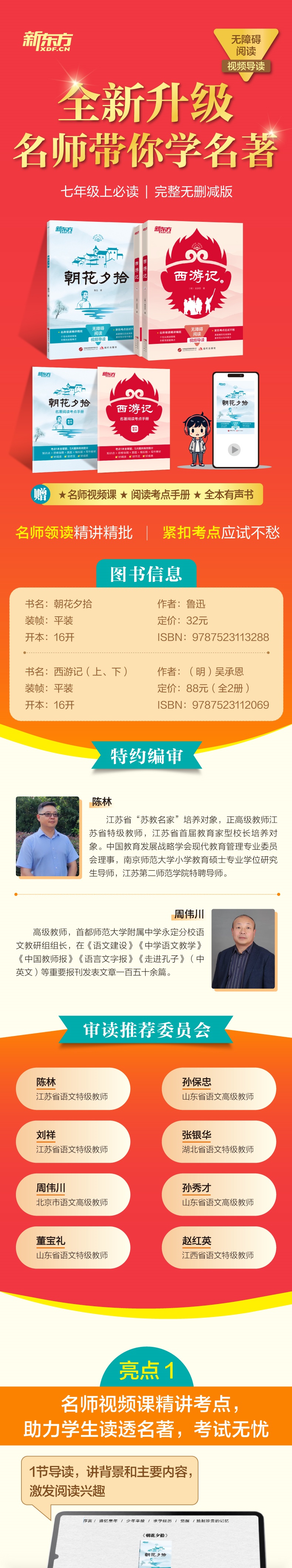 新东方 朝花夕拾和西游记上下册七年级上 初一必读书目含考点手册
