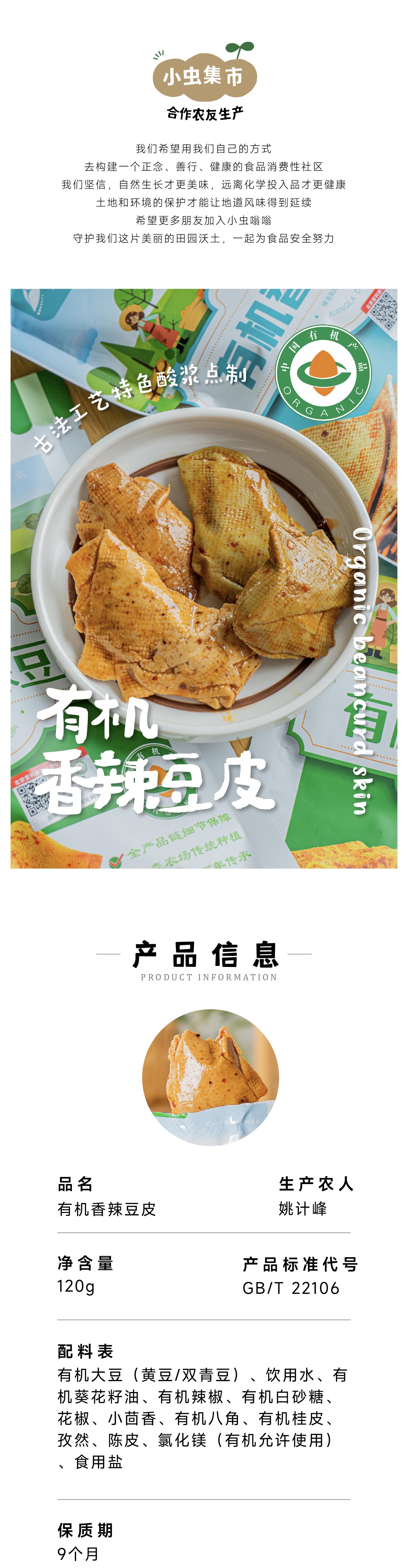 有机香辣豆皮(黄豆/双青豆)120g/袋 | 合作农友生产,来自河北承德,生产者:姚计峰 &【公平贸易农人定价】