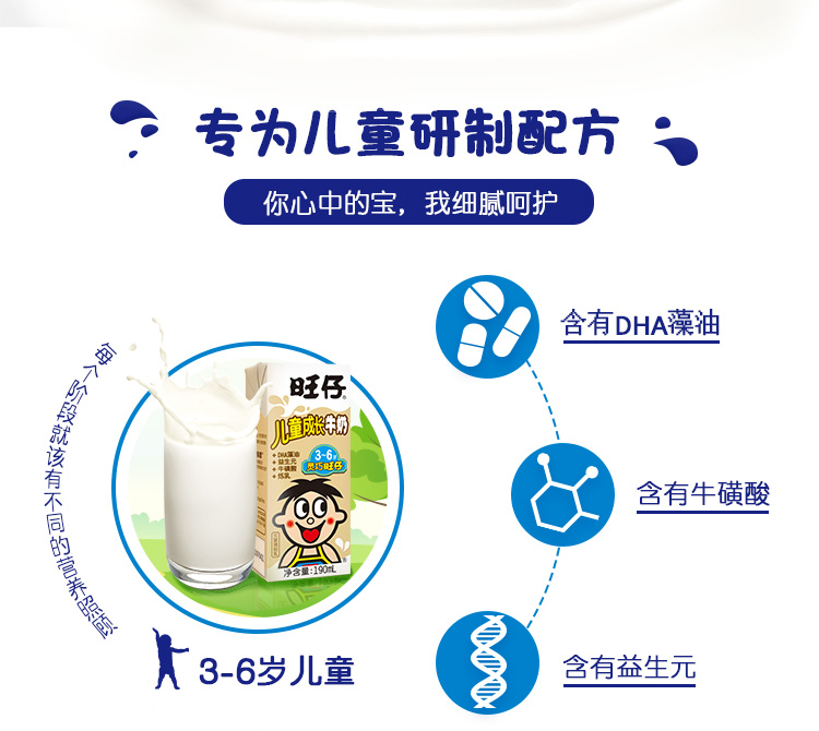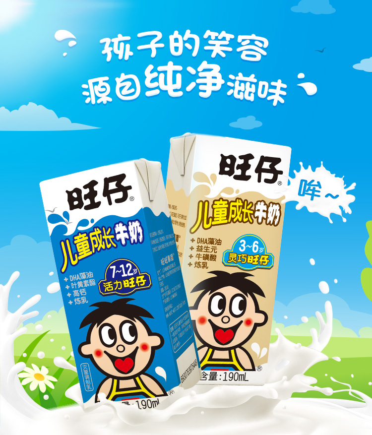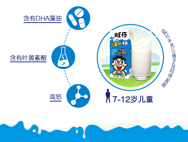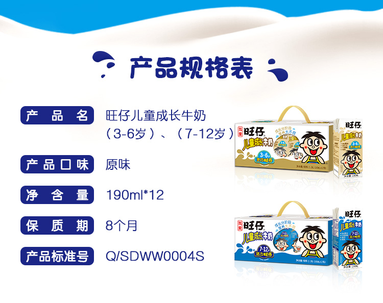 【喝到26年2-3月】旺仔儿童成长牛奶190mlX12原味礼盒装