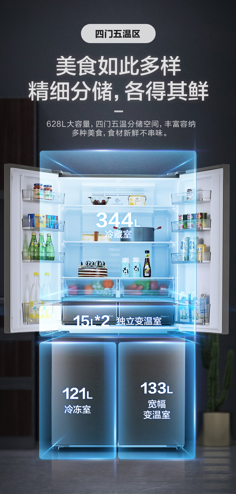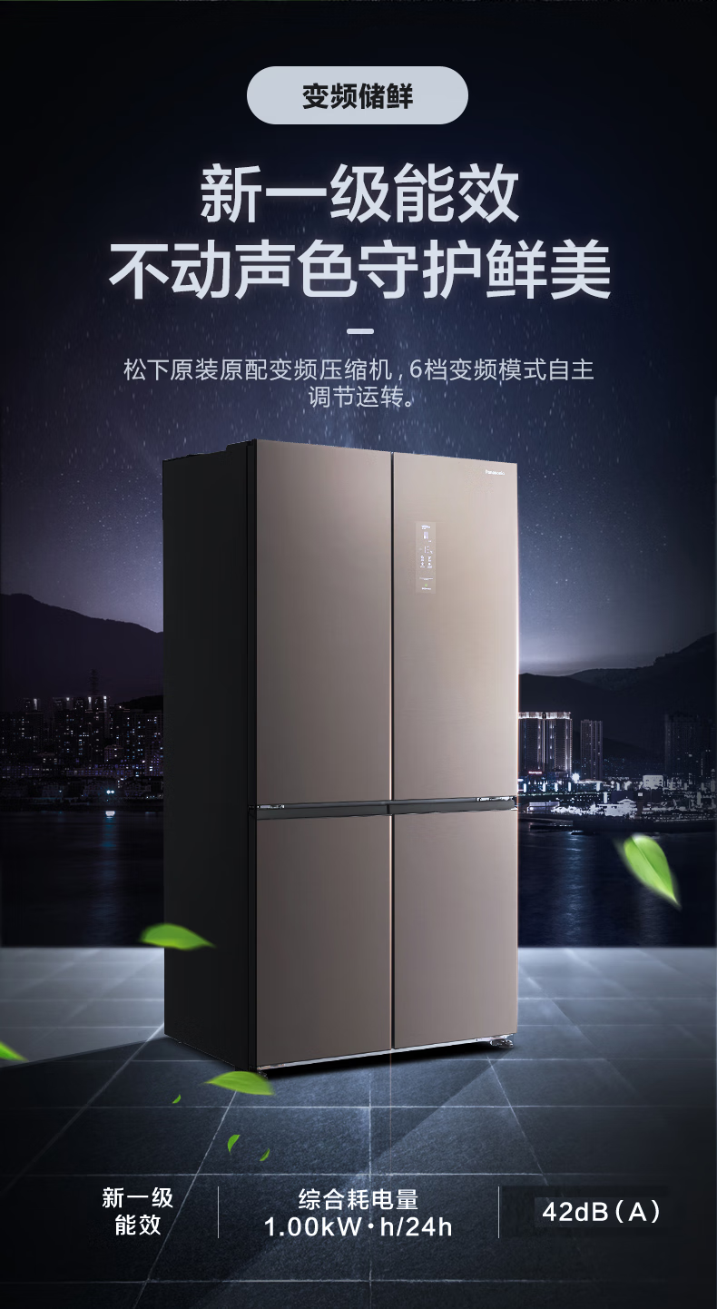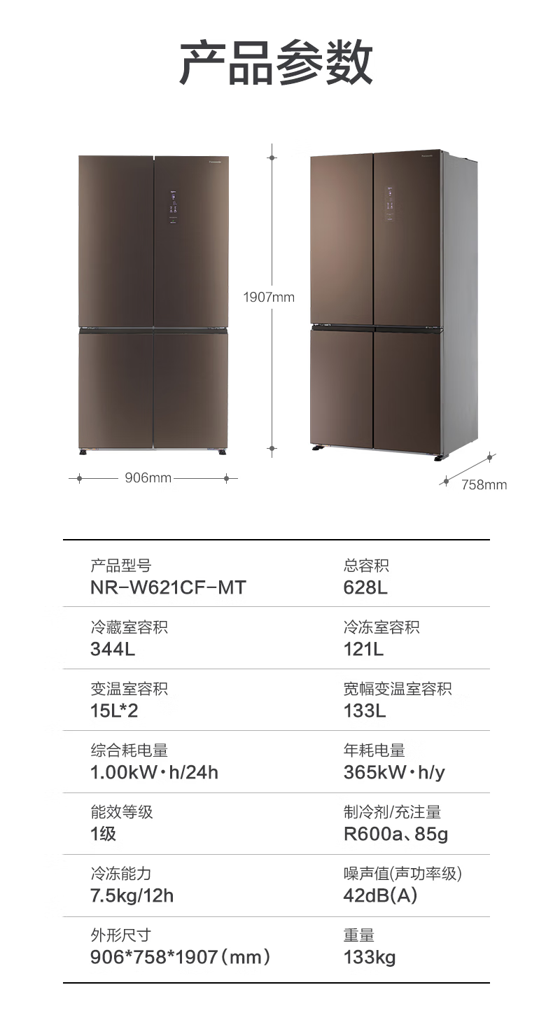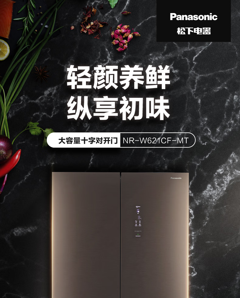 【线下同款】松下(Panasonic)628升十字对开多门冰箱全风冷无霜变频银离子除菌 NR-W621CF-MT