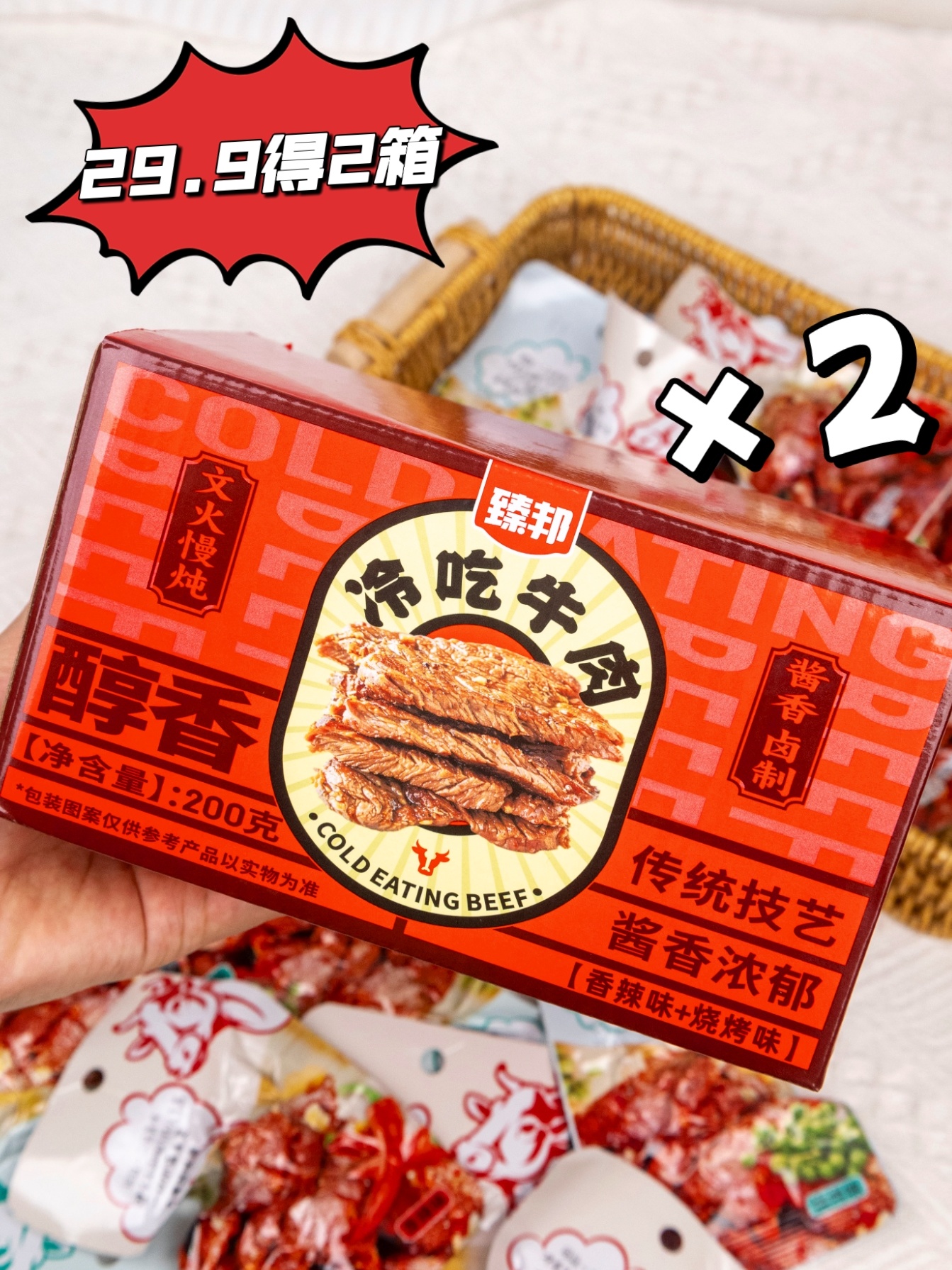 【臻邦冷吃牛肉】2箱💰29.9元🐮牛肉+牛筋新吃法🥩肉香四溢劲道弹牙,牛味儿十足 ✅≥40%的牛肉含量