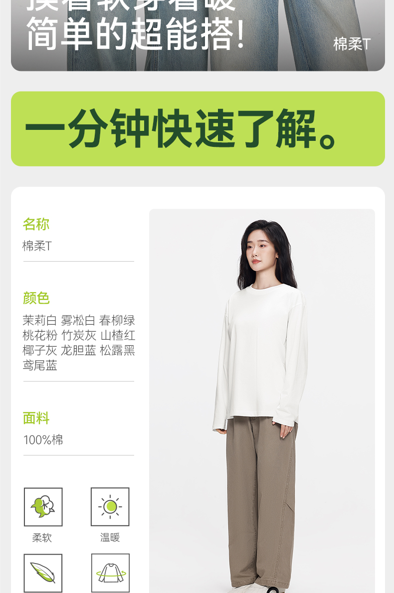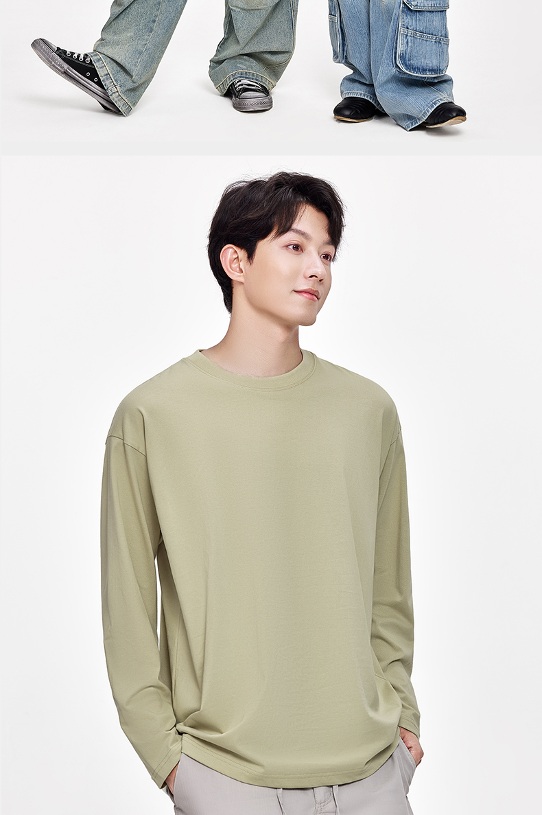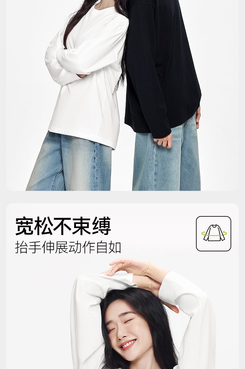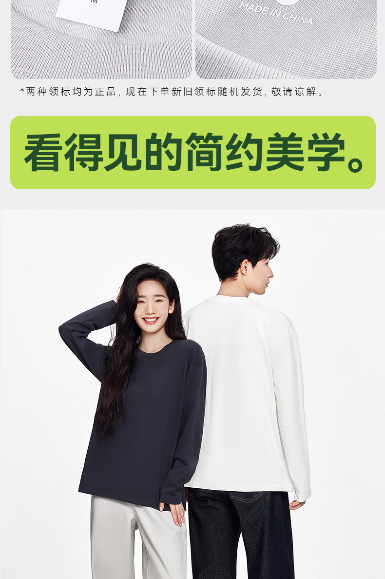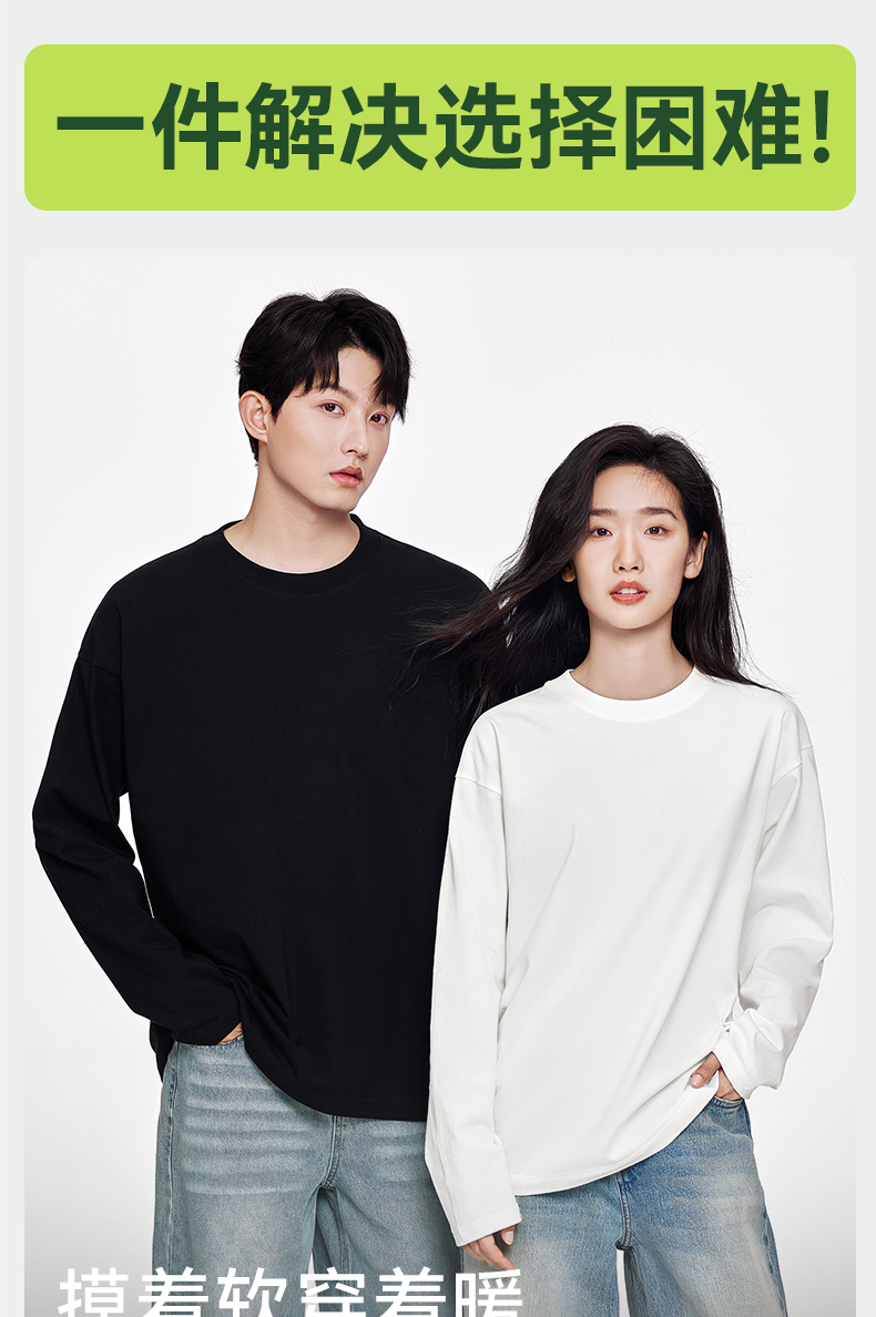 「棉的美学」两件装 重磅230G纯棉长袖~秋季休闲百搭纯色纯棉长袖t恤男女同款