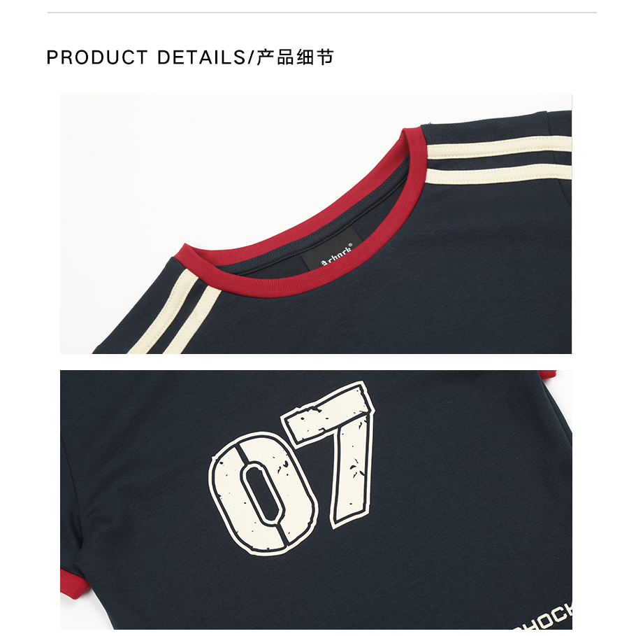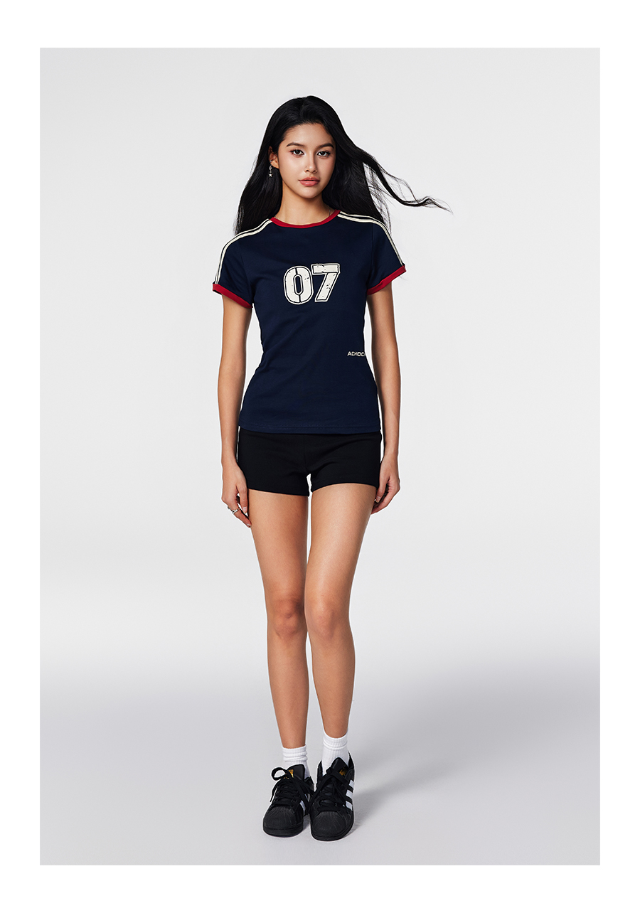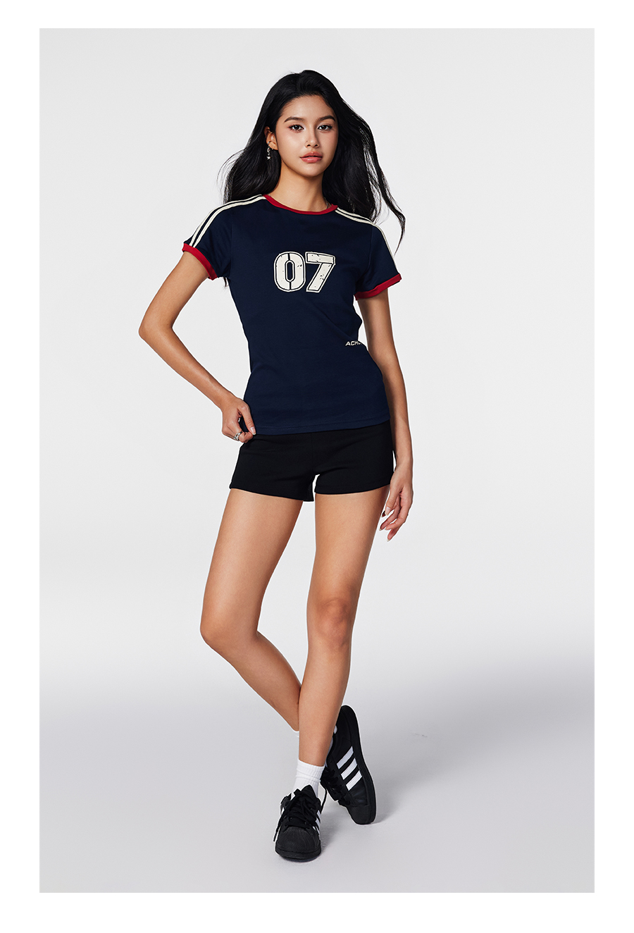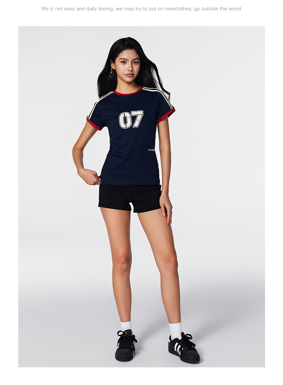 【Achock官方店】美式复古辣妹撞色条纹拼接潮牌显瘦修身短袖体恤