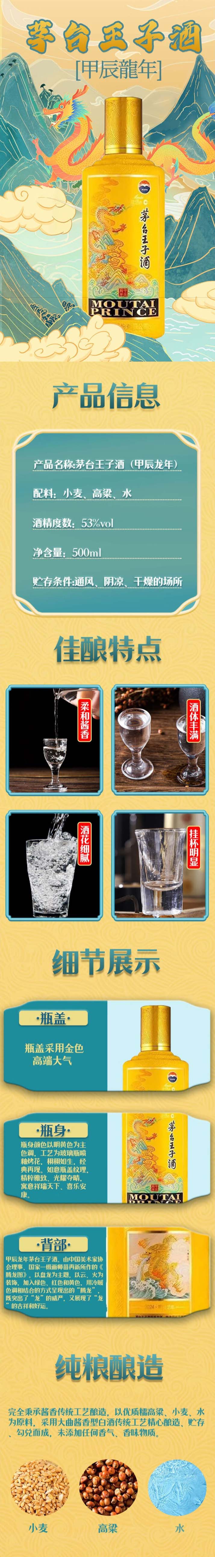 【收藏品鉴】茅台(MOUTAI)王子酒甲辰龙年 酱香型白酒 53度 500ml单瓶装 500ml*6整箱