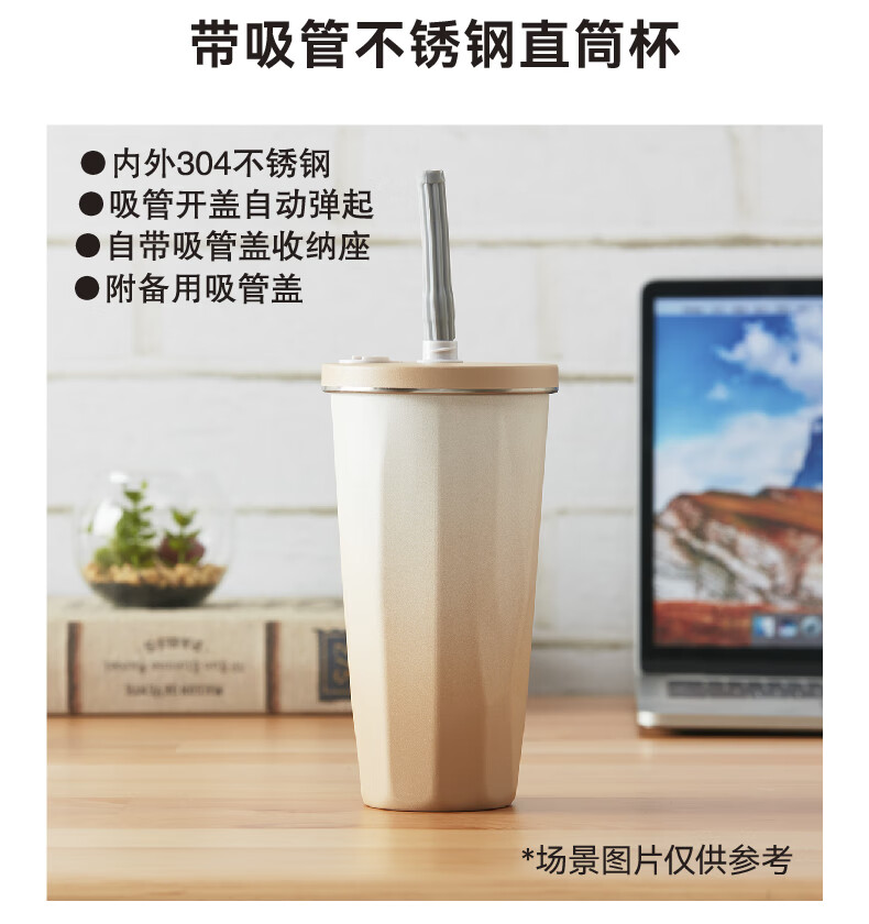大容量不锈钢保温杯保暖保冷带提手随行杯吸管直桶杯