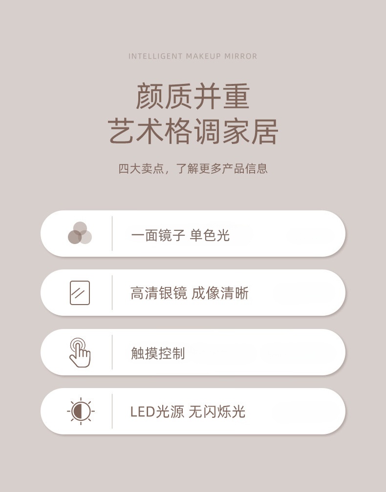 色温和控制:镜子是单色温,白光,且是触摸控制,你可以触摸按钮进行开光机。