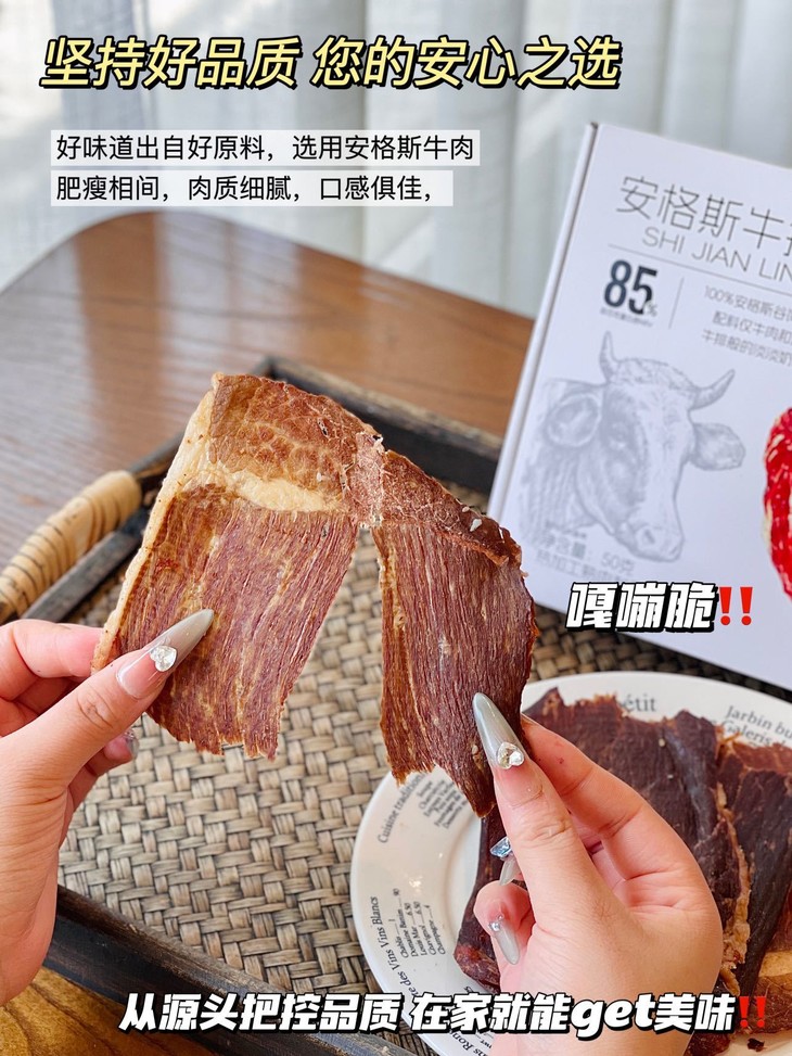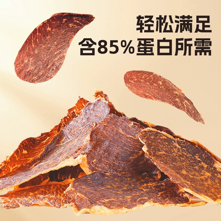 【营养解析】 ✔ 高密度动物蛋白|14倍牛奶蛋白轻松补,增肌减脂党“作弊神器”,撸铁前抓一把就稳! ✔ 天然铁锌炸弹|安格斯牛肉自带血红素铁,熬夜脸黄、手脚冰凉人群救星! ✔ 0负罪感零食|无糖无淀粉无科技,生酮/控糖人士实现“吃肉自由”! ✔ 高饱腹低热量|3片抵饿2小时,暴打膨化食品,追剧狂炫不怕胖!