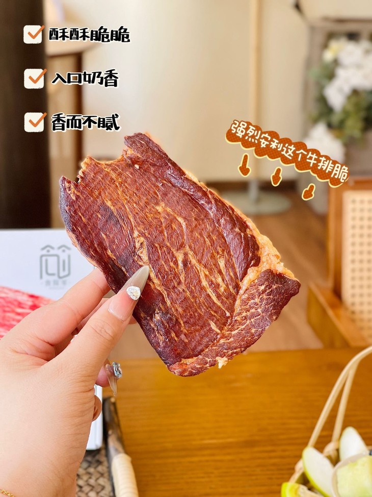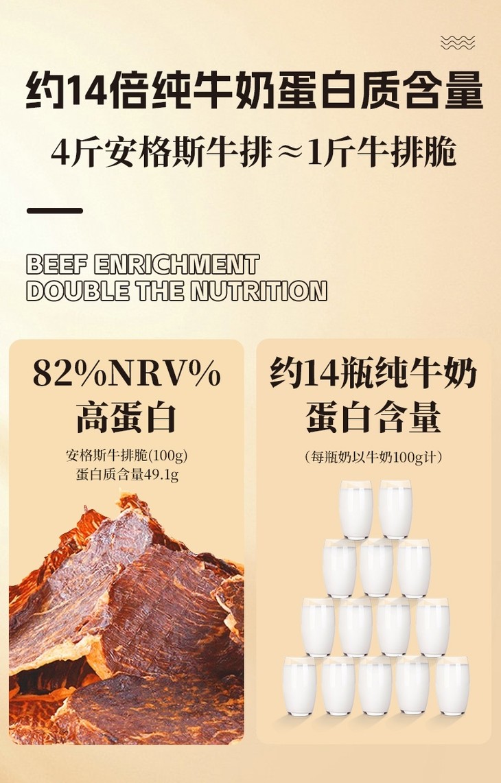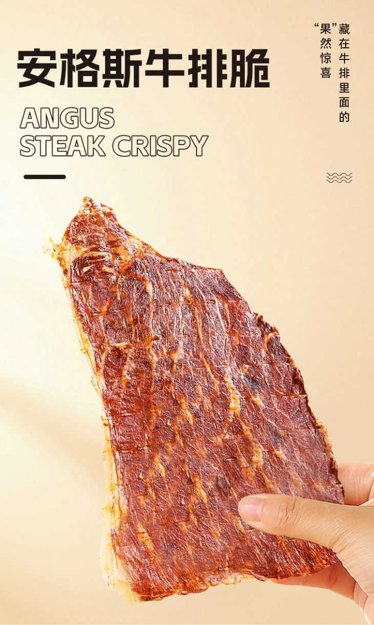 「1片=14瓶牛奶蛋白!安格斯牛排脆」4斤肉浓缩1斤脆,0添加狠货!追剧/健身党啃到上头! 一句话暴
