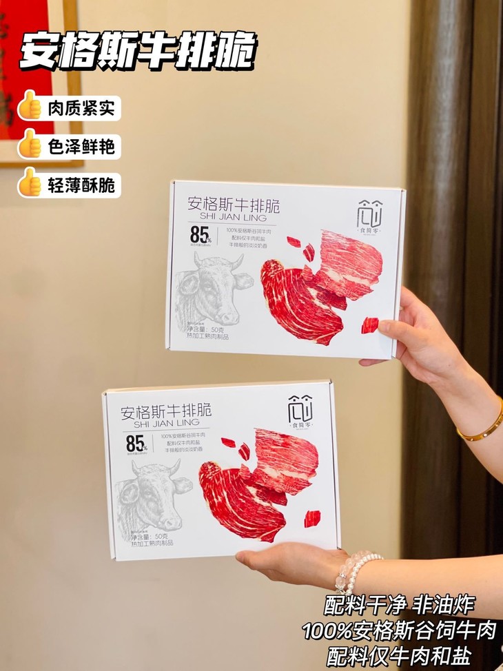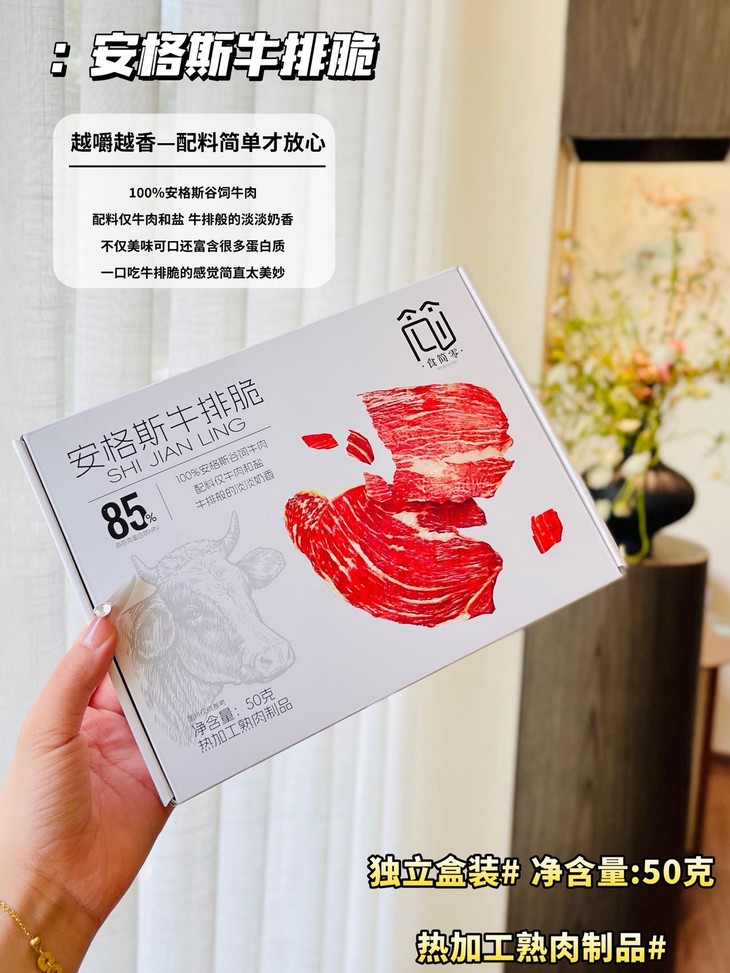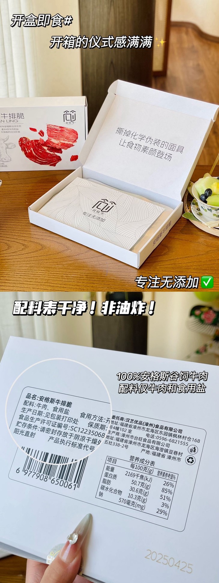 🥩 肉食界“成分党”,配料表短到离谱! 真·牛排刺客|配料表只有安格斯牛排+盐!撕开包装=闻到煎牛排的焦香,酥脆到掉渣! 蛋白质“核弹级”|4斤牛排浓缩成1斤脆片,1片≈14瓶牛奶蛋白,吃肉补蛋白直接封神! 工艺卷死同行|高温锁鲜非油炸,薄到透光脆到“咔嚓”,像薯片一样上瘾但健康100倍! 喂娃级纯净配方|0防腐剂、0香精色素、0蔗糖,恐龙家长闭眼囤,啃肉不脏手!