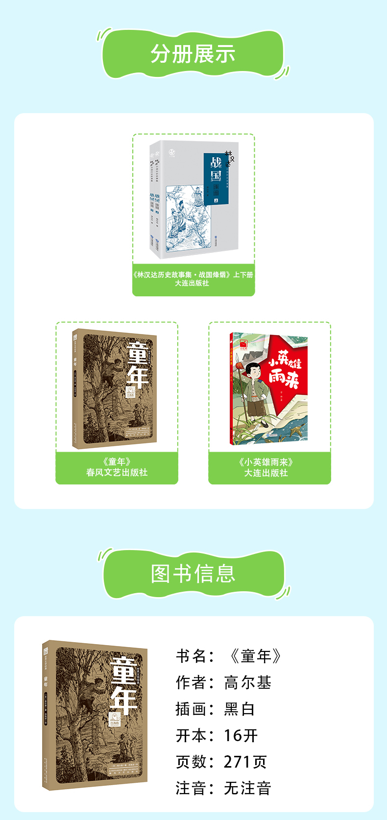 五升六套装《童年》《小英雄雨来》《林汉达历史故事集·战国烽烟》上下册《爱的教育》
