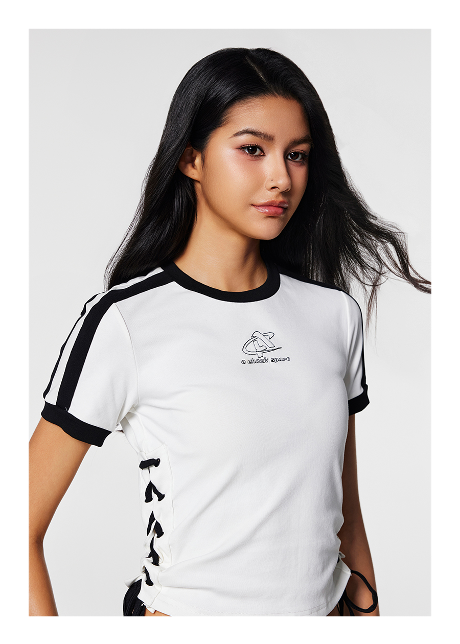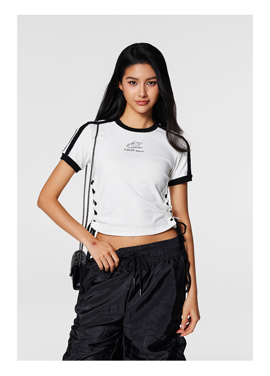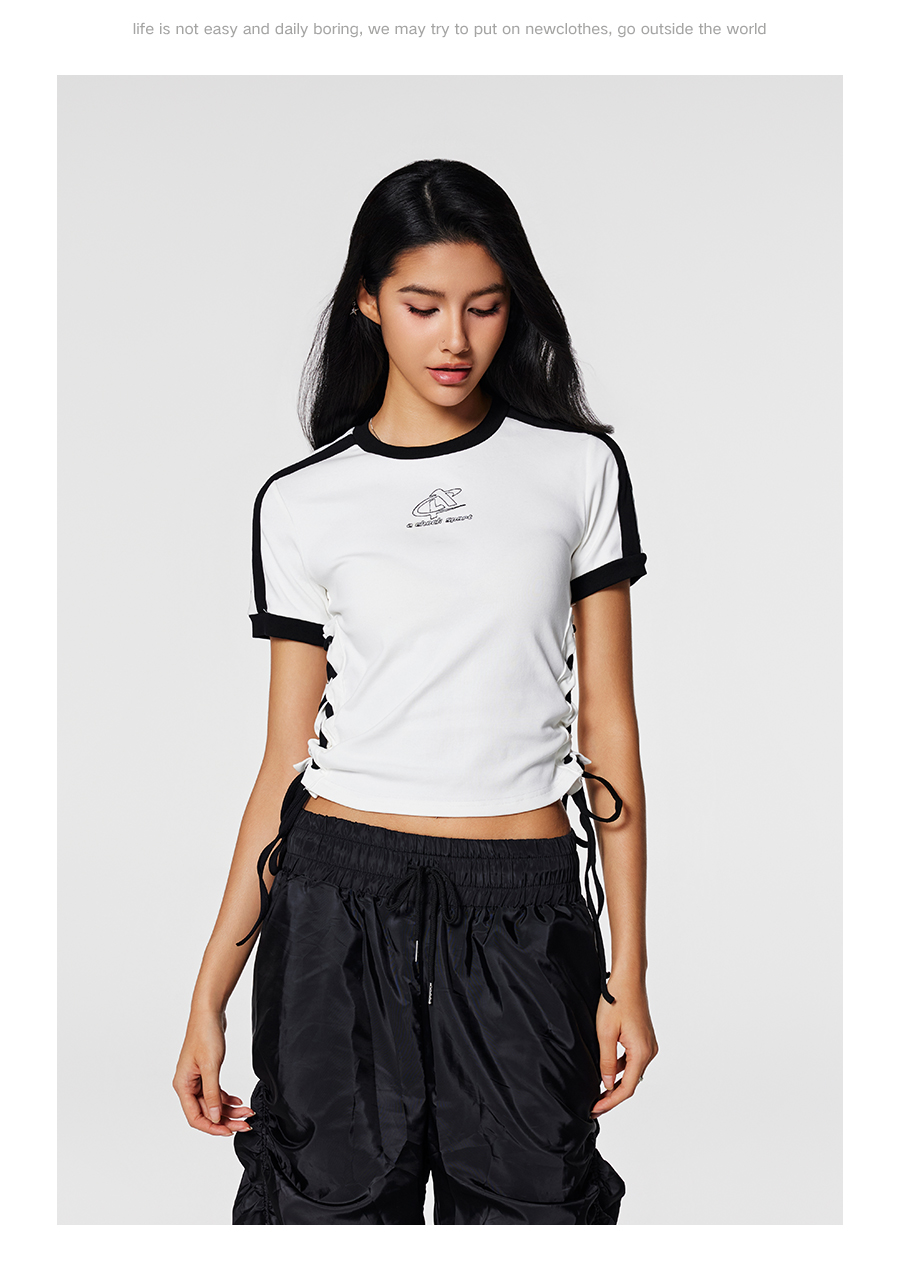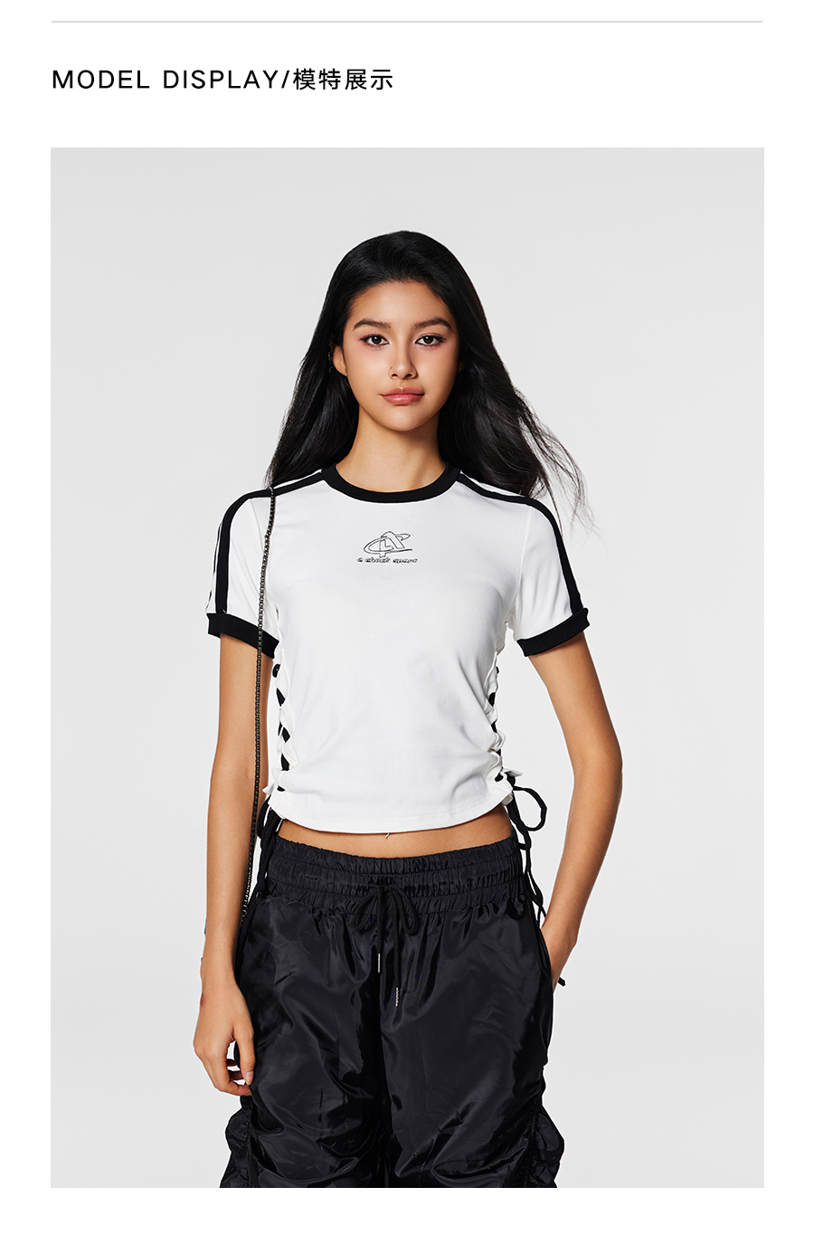 【Achock官方店】潮牌辣妹绑带设计露脐短袖美式夏季新款圆领T恤