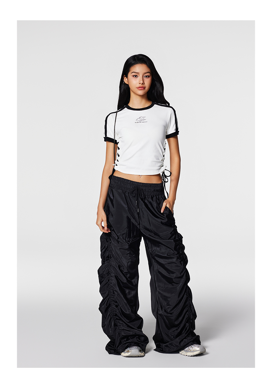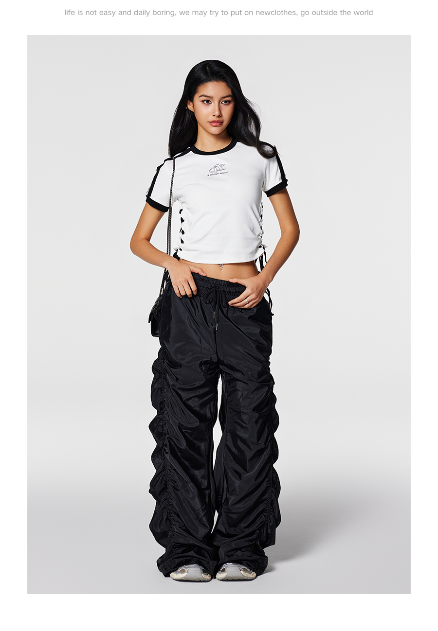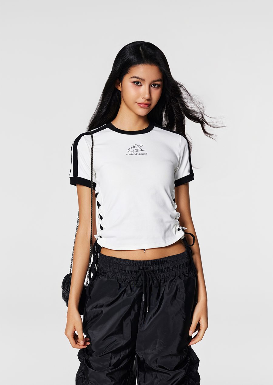 【Achock官方店】潮牌辣妹绑带设计露脐短袖美式夏季新款圆领T恤