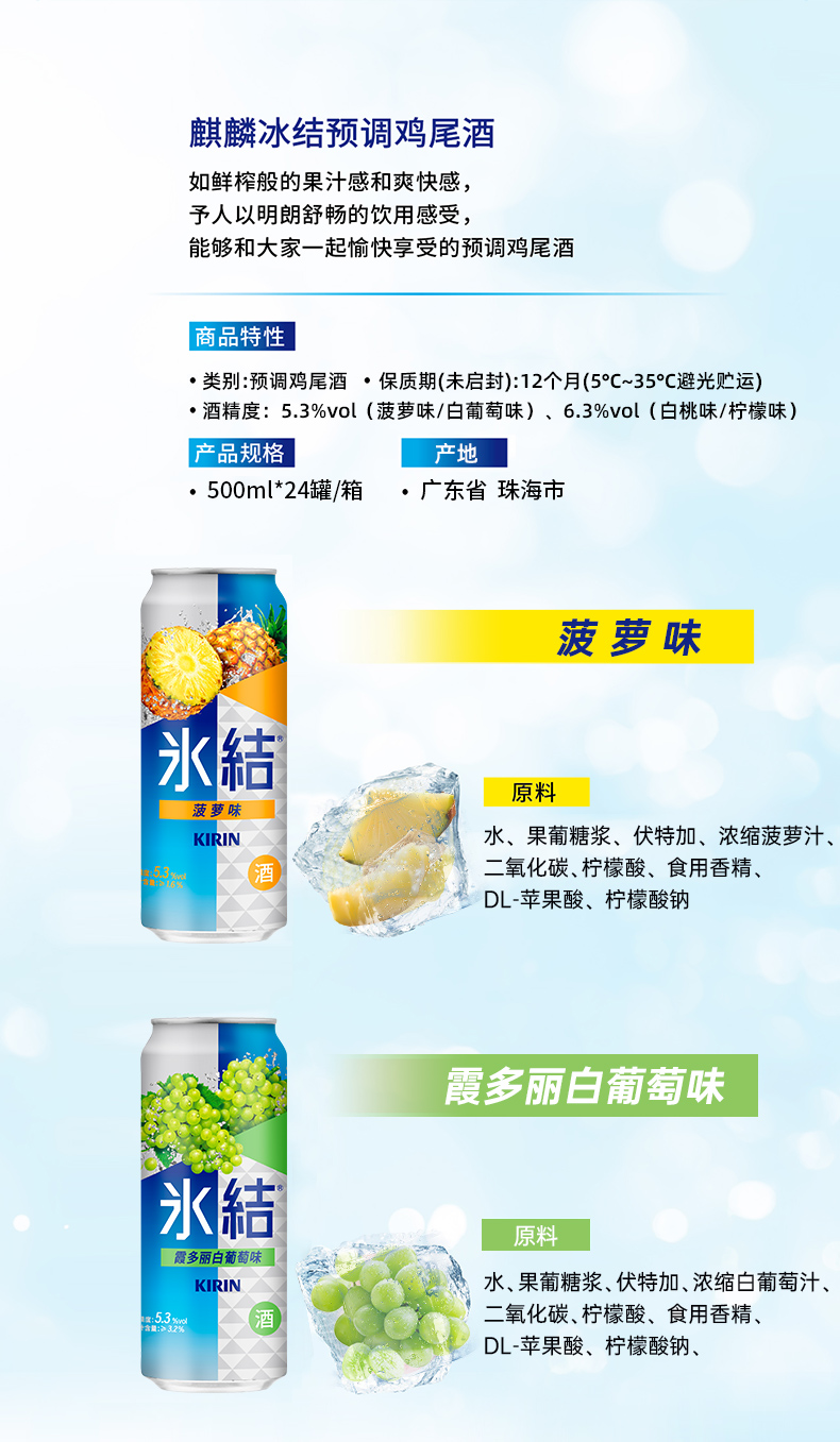 【最早到期日】麒麟KIRIN冰结预调鸡尾酒 果酒 低度数女生微醺酒配制酒 6.3%vol 24罐