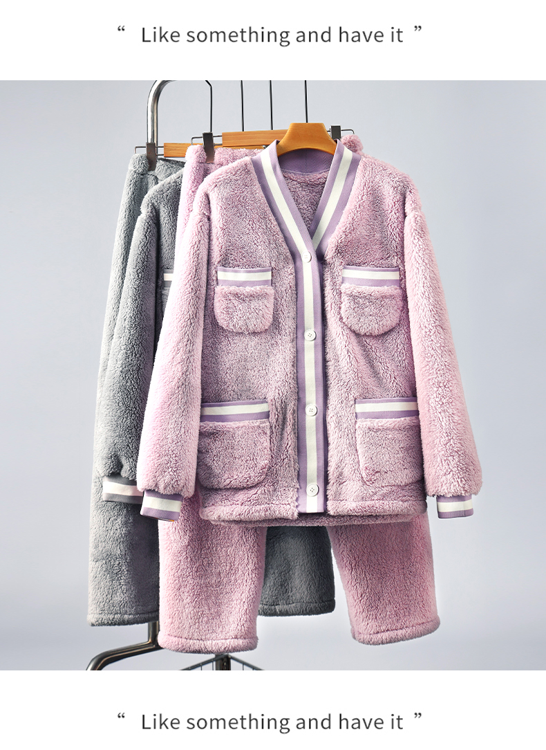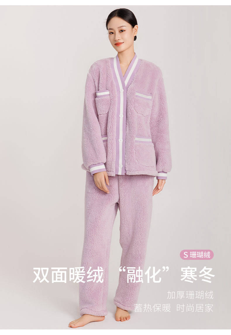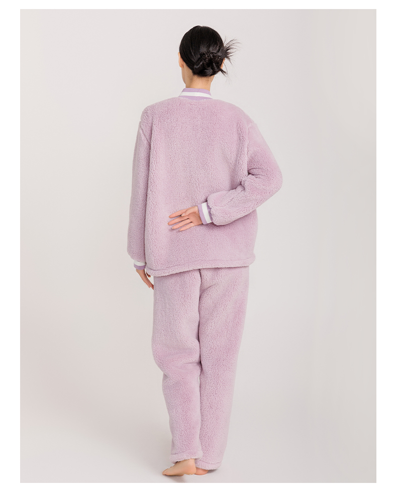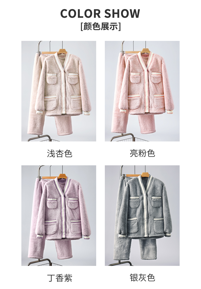 女款拼接撞色罗纹冬季可外穿小香风家居服套装 774106 商品图2