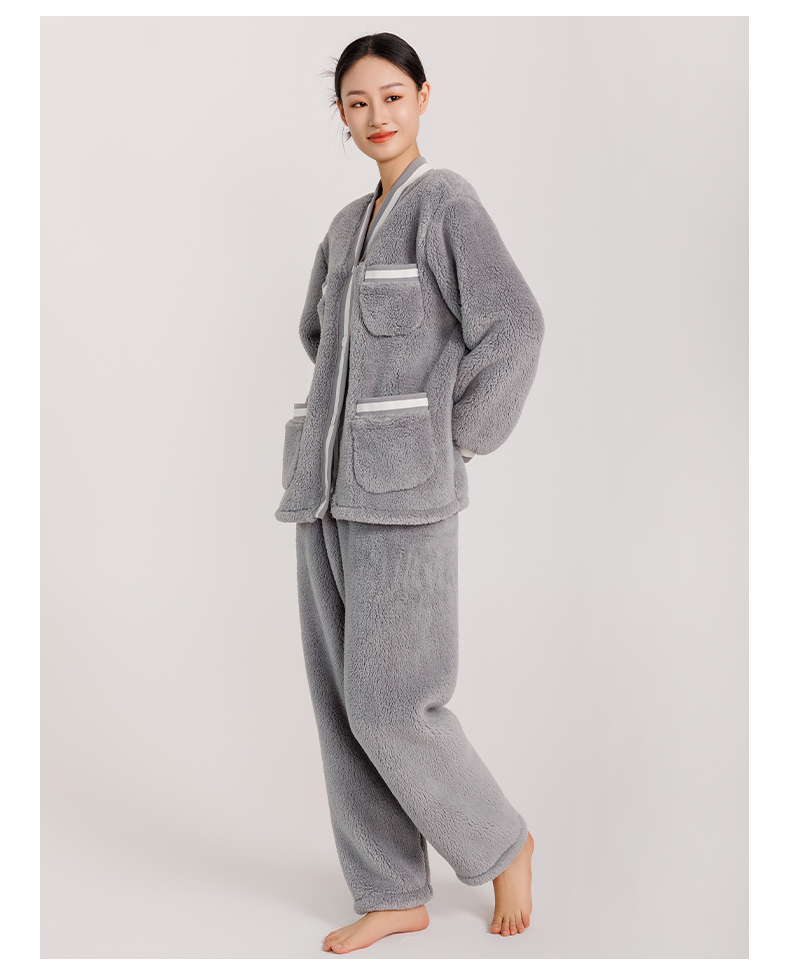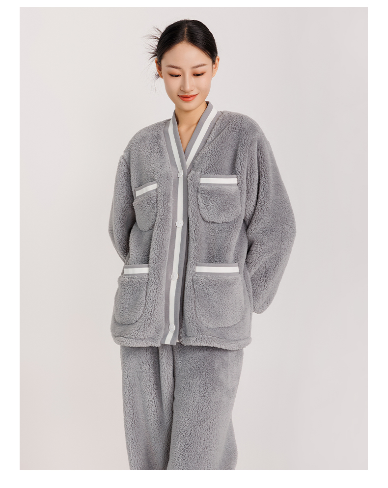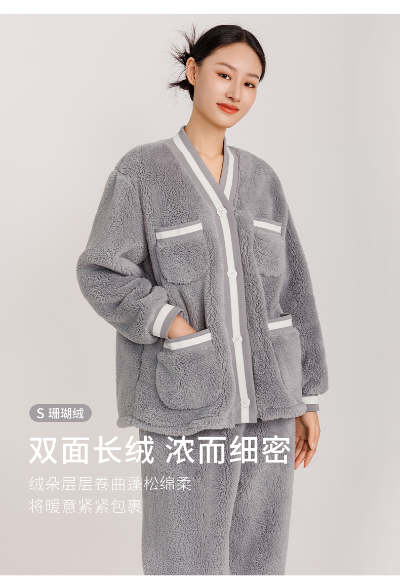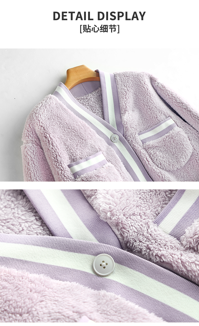 女款拼接撞色罗纹冬季可外穿小香风家居服套装 774106 商品图2