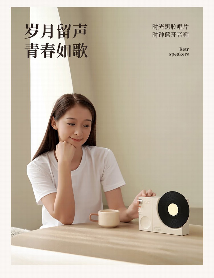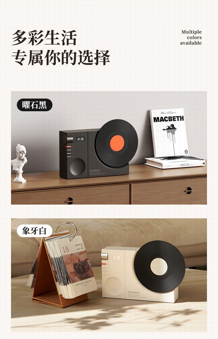 HYUNDAI时光黑胶唱片时钟蓝牙音箱YH-F170
