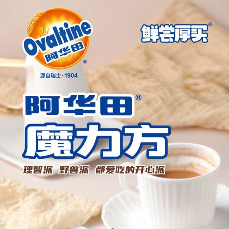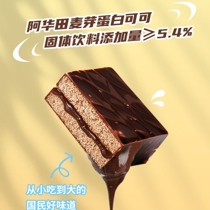 还是特别调制的配方 真材实料! 优选纯可可脂🌰非代可可脂,健康又美味 带来由内而外的浓郁香醇巧克力味道~ 阿华田麦芽可可固体粉剂加入,使巧克力涂层和夹心的味道非常浓郁纯粹,满满都是阿华田的醇香~ 香醇的小麦🌾就像纯纯的友谊凝结于心 配上里面夹心!咬一口就满血复活! 阿华田YYDS!