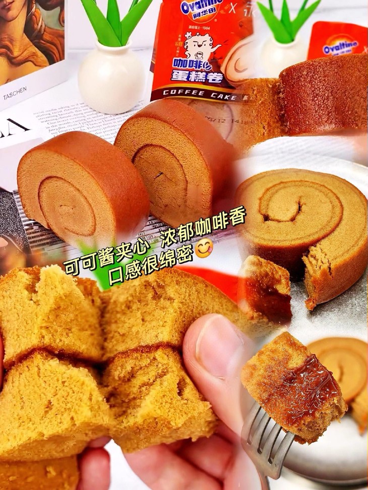 【阿华田蛋糕卷】 一口童年的味道,口感细腻,松软可口 一开袋子就有香香甜甜的味道传出✨ 入口就是coco的醇厚浓香~ 软糯蛋糕体,香甜绵软,好吃不腻😋