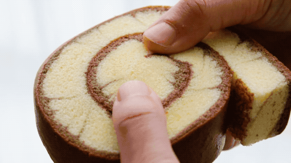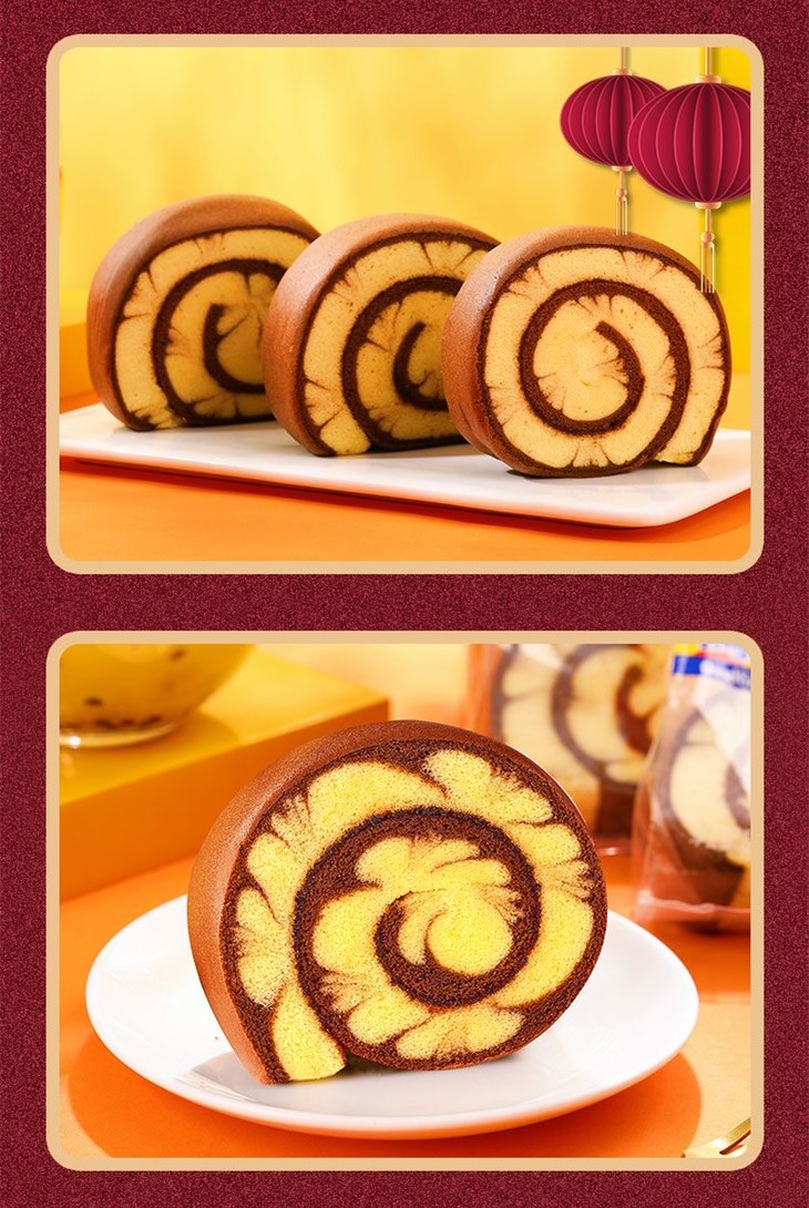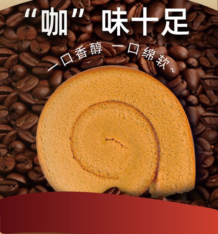 敦实的蛋糕卷个头很大,颜值就很吸引眼球 蛋糕的弹性也棒,轻轻按压回弹感强❗️ 咖啡棕色的蛋糕裙边把奶黄色的蛋糕主体衬托得更为亮丽了✨ 用来当下午茶真的再适合不过啦✌️