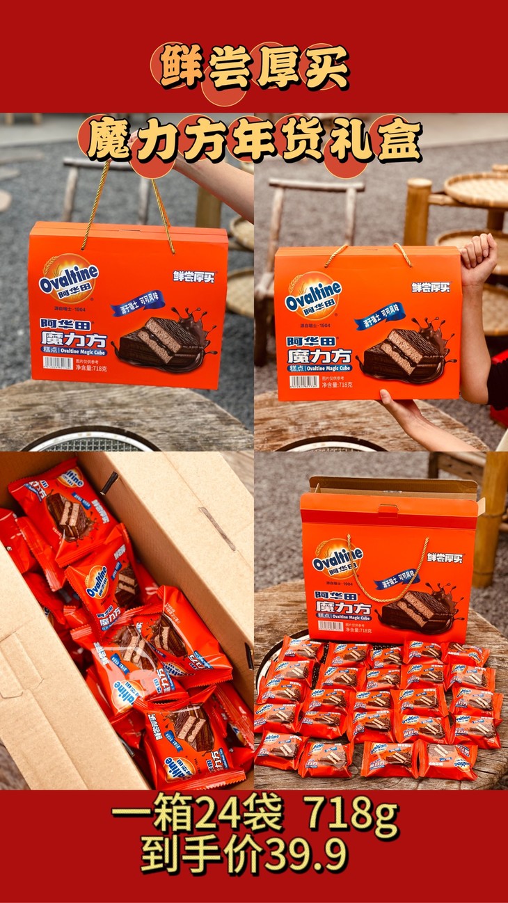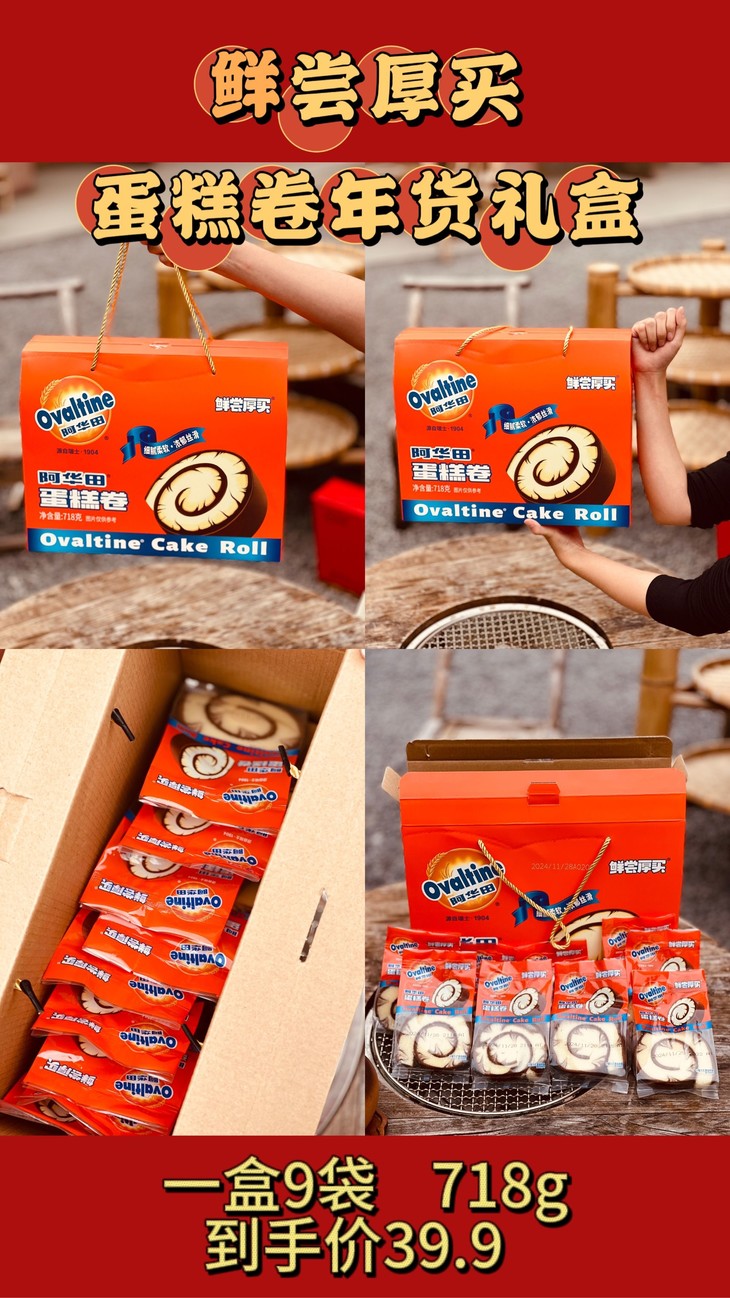 💥全网热销爆款 【鲜尝厚买年货礼盒】💥!! 🎈39.9一大箱!到手!! 【鲜尝厚买阿华田蛋糕卷718g礼盒装】 【鲜尝厚买阿华田魔力方718g礼盒装】 【鲜尝厚买阿华田雪绒蛋糕718g礼盒装】 【阿华田X永璞咖啡蛋糕卷718g礼盒装】 最新日期!非代可可,好吃更健康!而且无反式脂肪酸哦!库存有限😭千万不要错过啦